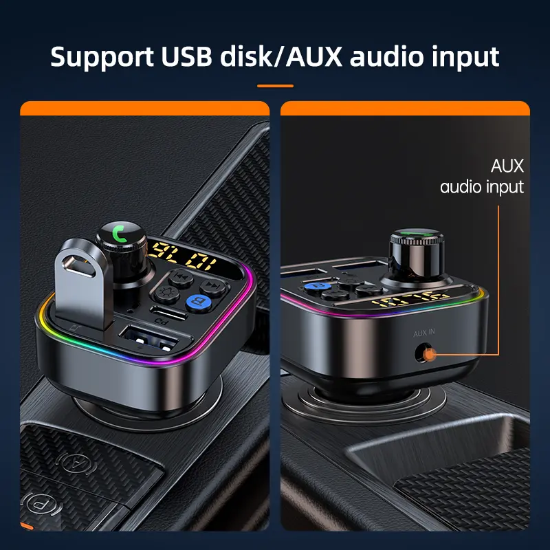 Bluetooth 5.3 FM Transmitter Wireless Bluetooth Car Adapter AUX Radio Receiver MP3 Player Handsfree Call Type-C USB Car charger