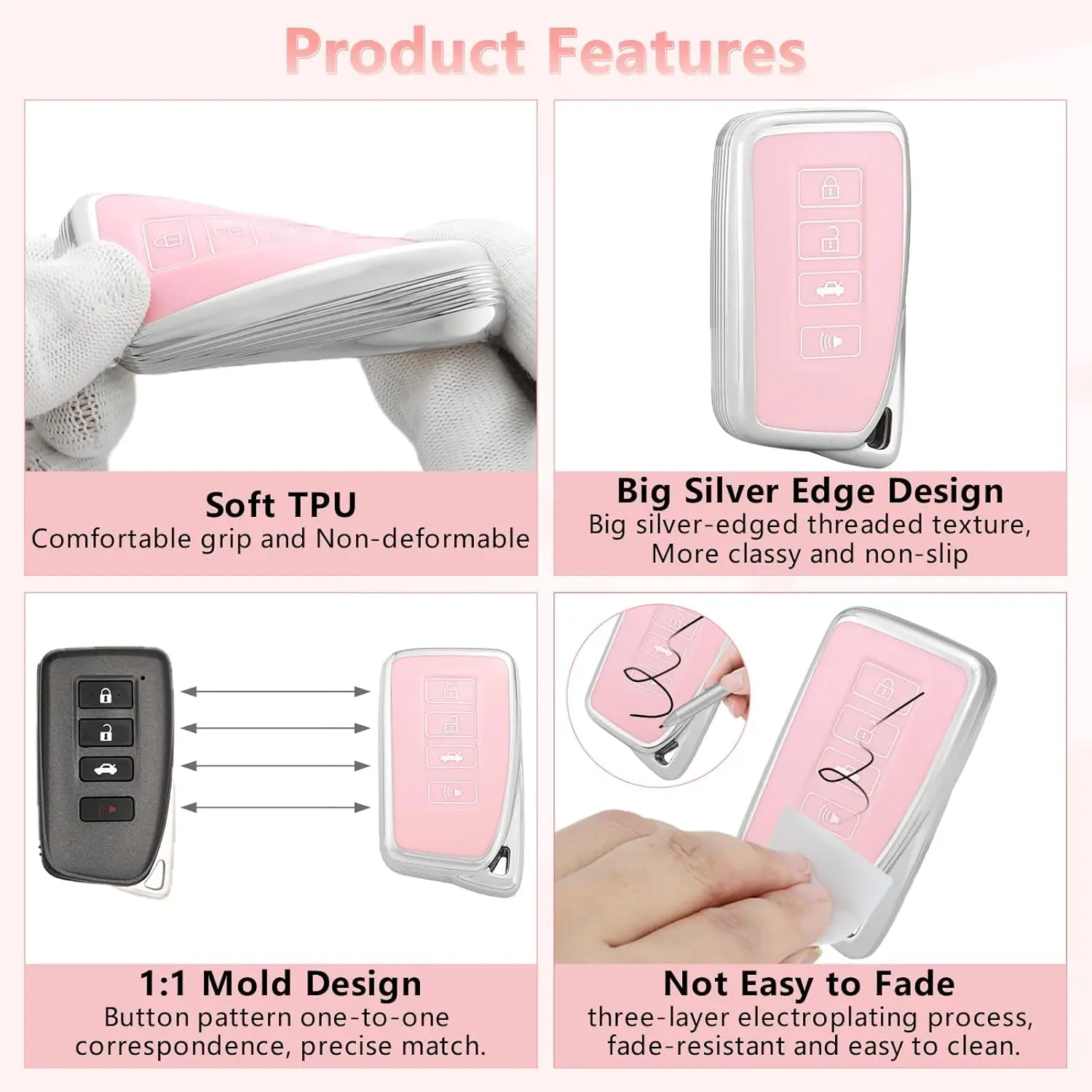 1PC Pink Key Fob Protector Case for Lexus; 1PC Bling Keychain for Lexus; 1 PC Mini Screwdriver (Pls keep it with you so you can take out the keys at any time.)