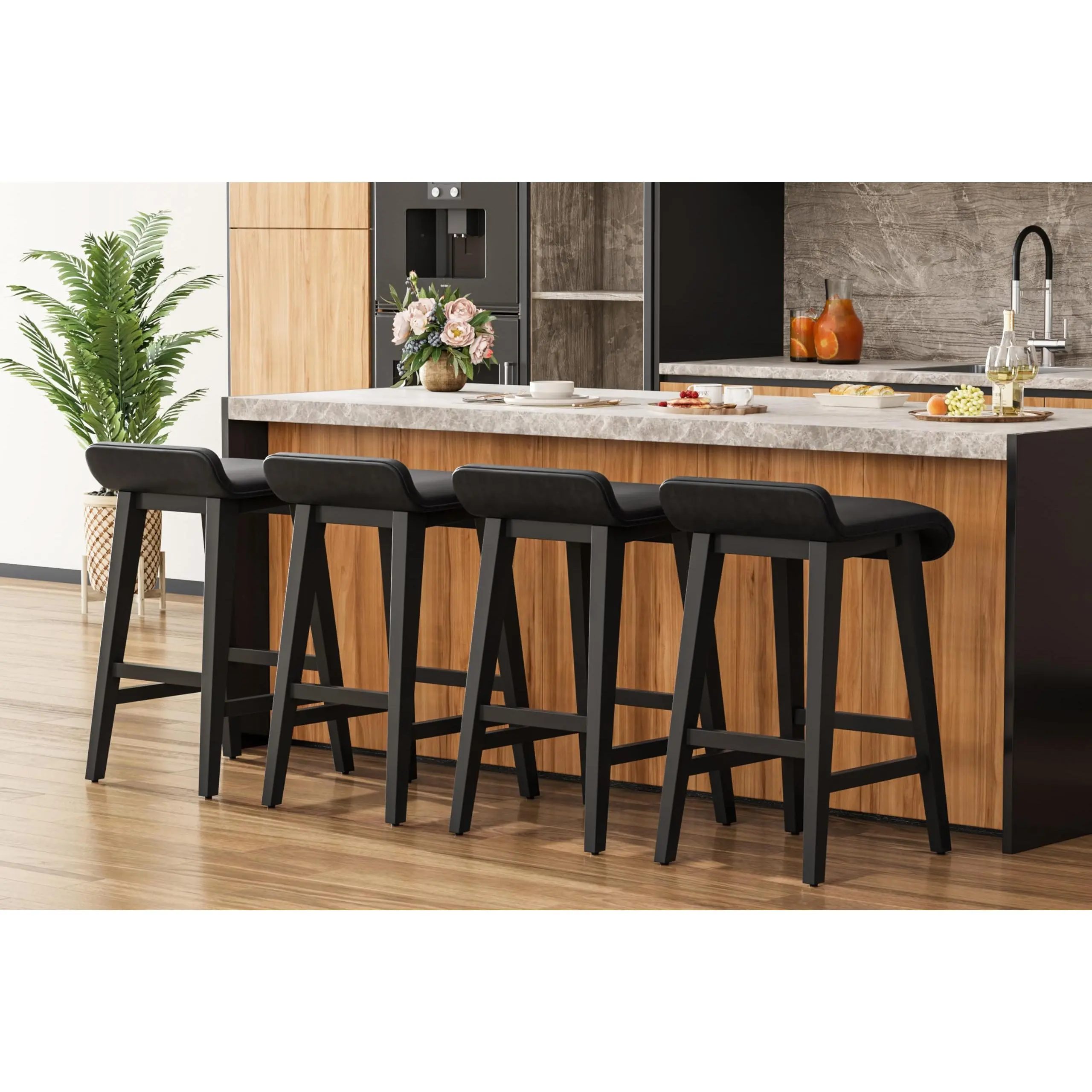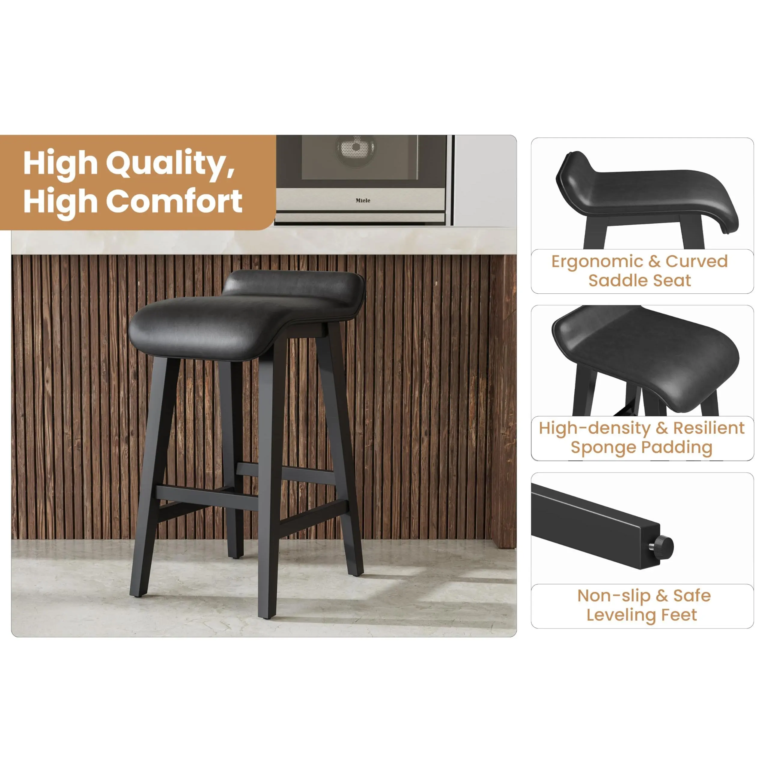 【Modern Industrial Design for Elevated Home Decor】Experience the perfect blend of industrial chic and contemporary elegance with these 26.2-inch counter height bar stools. Featuring a sleek oak wood frame paired with a wide PU leather upholstered seat, they create a stylish focal point for kitchen islands, home bars, or dining areas. The streamlined silhouette maximizes legroom while complementing modern farmhouse, industrial, or Scandinavian interiors.