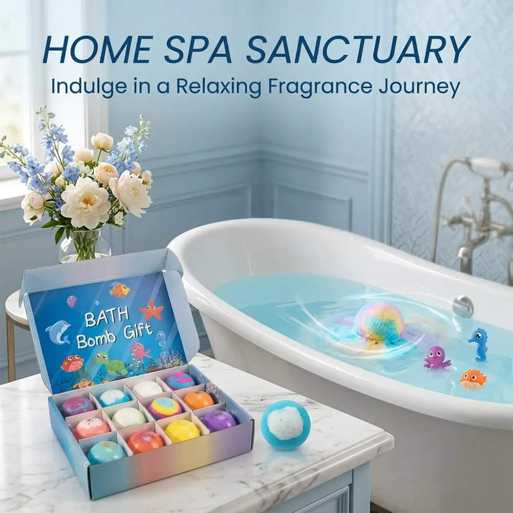 Bath Bombs with Surprise Inside, 12 Pack Fizzy Bubble Bath Gift Set, Dinosaur Egg & Ocean Theme Bath Fizzies, Natural Sea Salt Color Changing Spa Easter Bath Balls (Sea Animal 12PC)