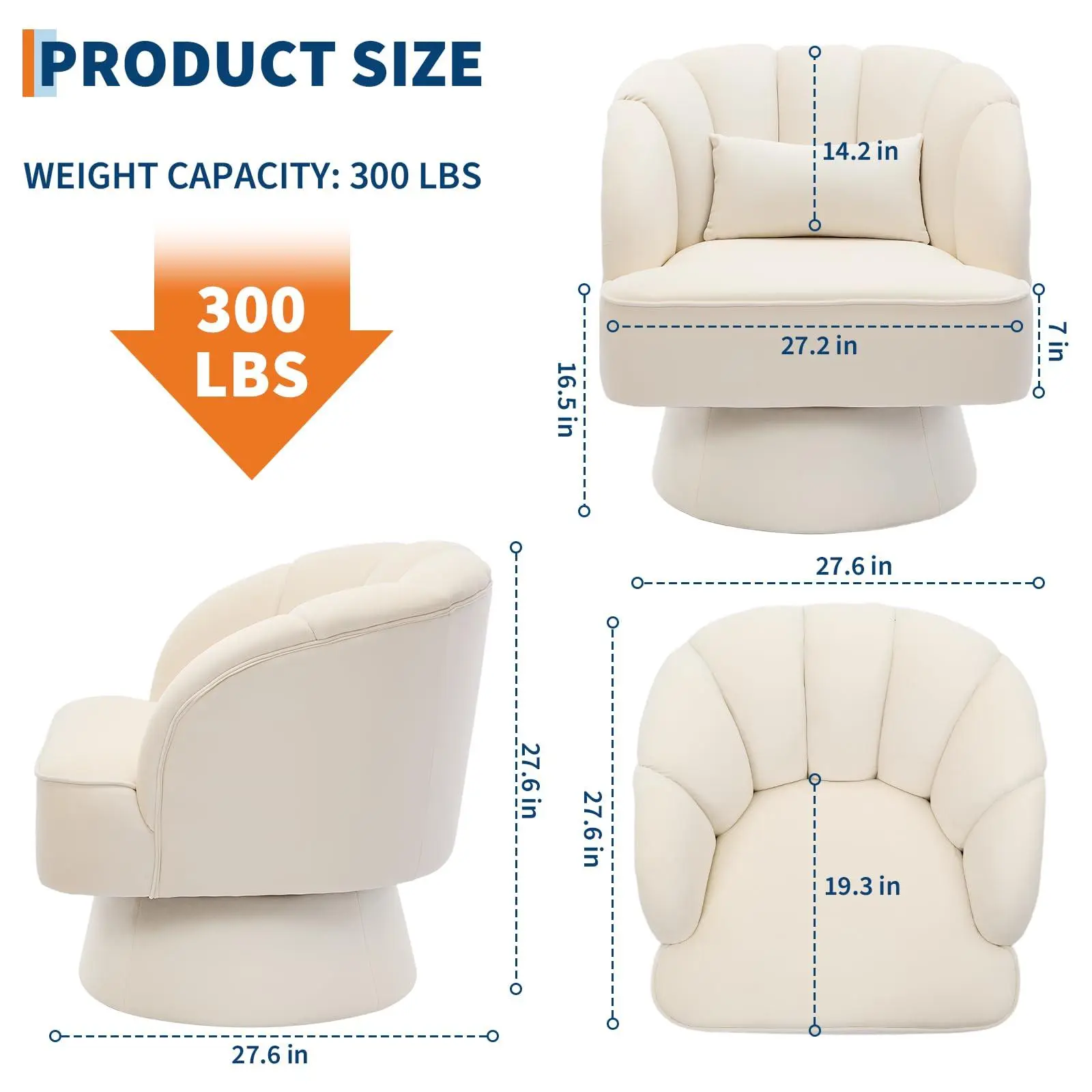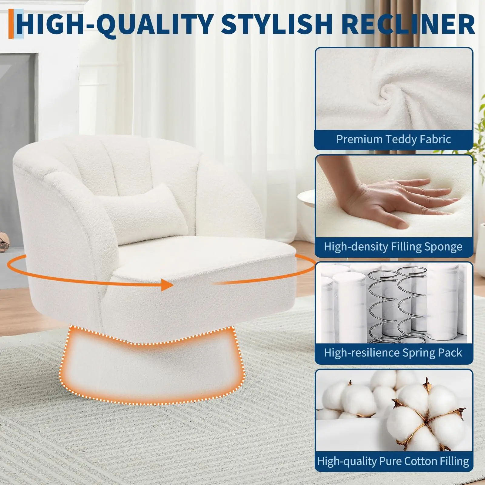 360° Smooth Swivel Design: Effortlessly rotate in any direction with the barrel accent chair. Perfect for reading, relaxing, or entertaining, the 360-degree swivel base lets you turn with ease-ideal for living rooms, bedrooms, nurseries, or home theaters.