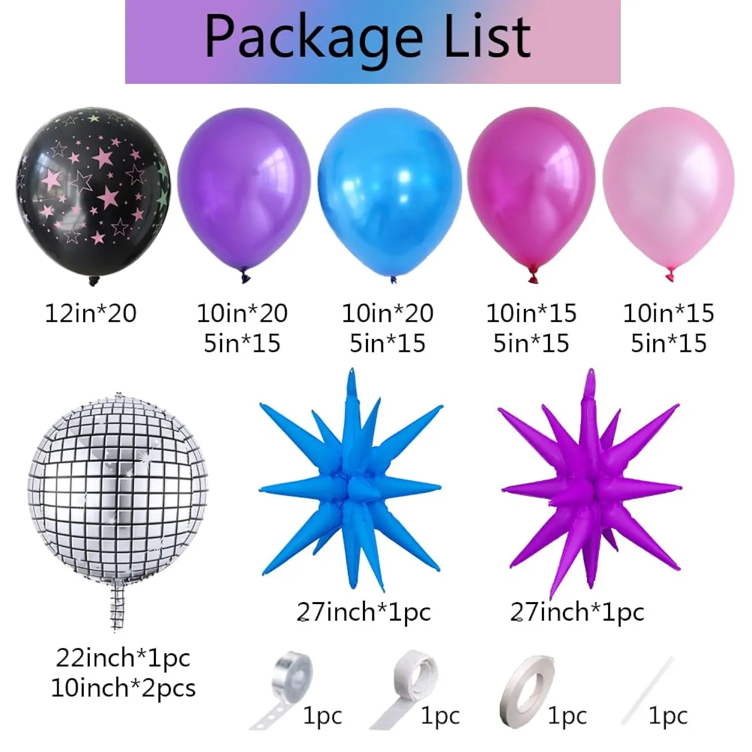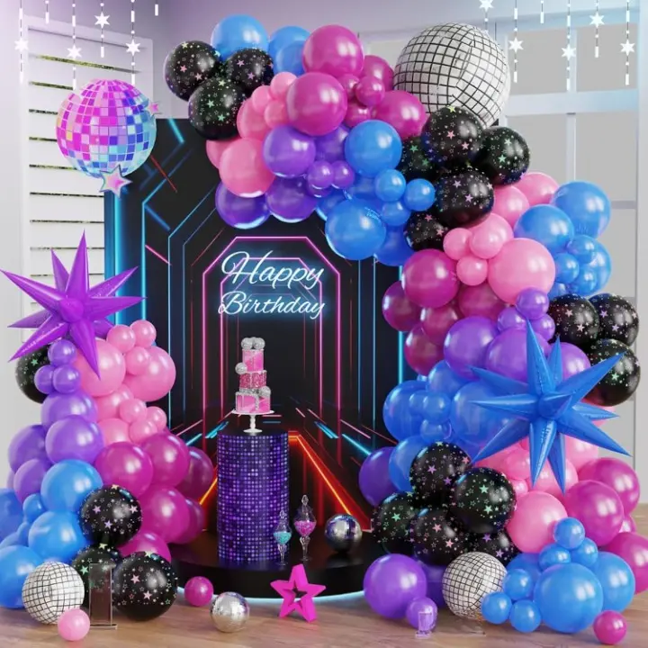 159 PCS Neon Balloon Arch Kit Pink Purple Blue Glow Theme Party Decor with Star Balloons Set