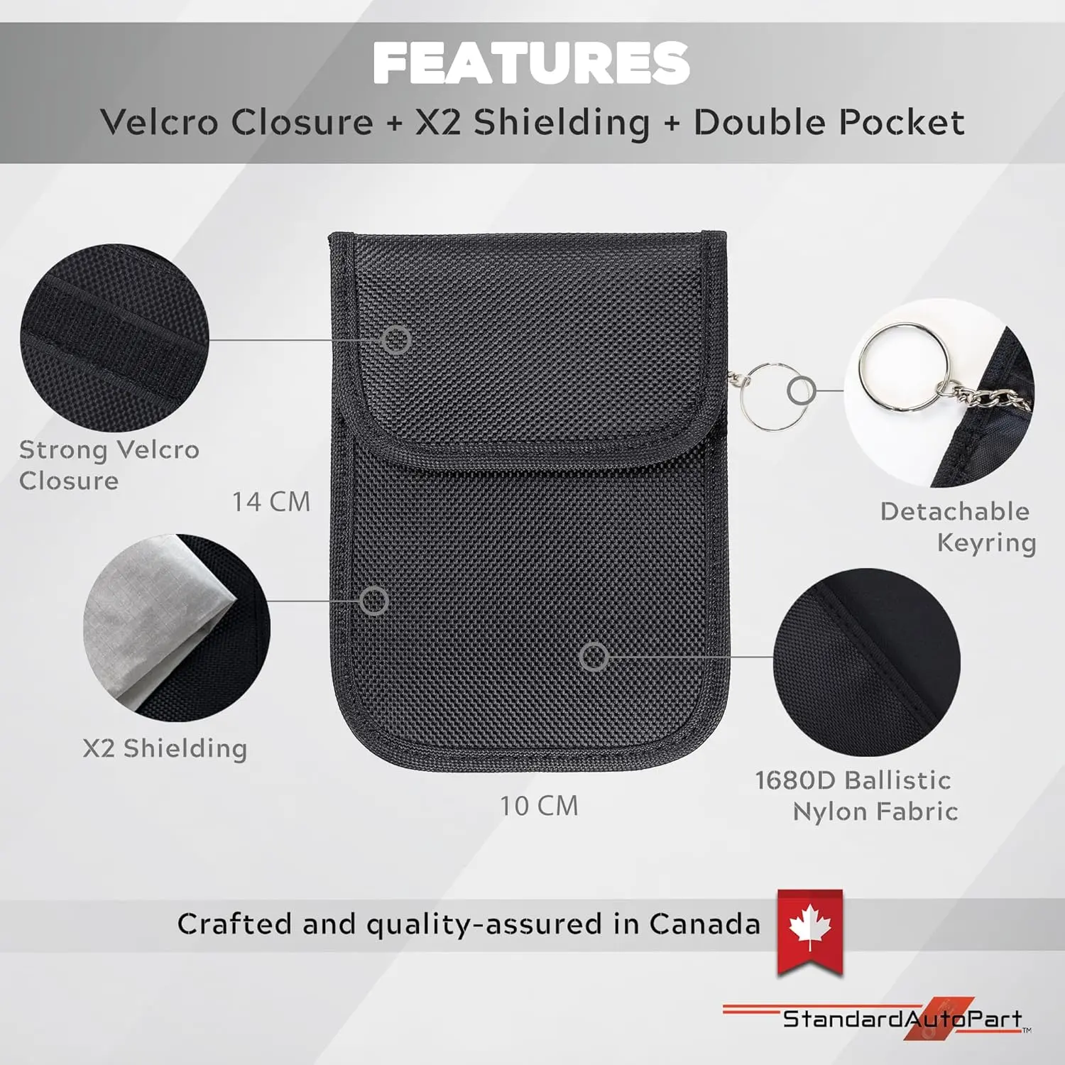Strong industrial-grade Velcro ensures a tight seal, while advanced dual-layer RF-blocking material fully blocks keyless entry signals and relay attacks.