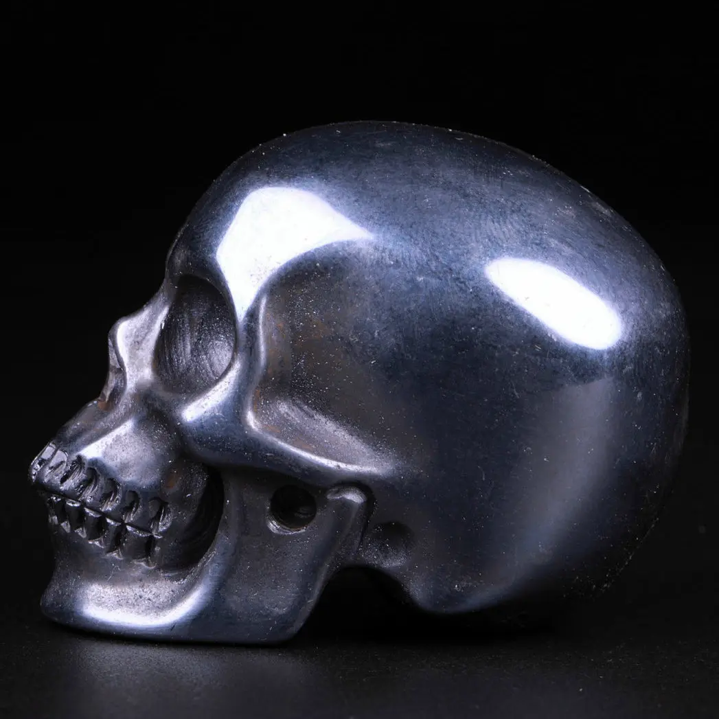 2.0 " Black Tourmaline Quartz Carved Crystal Skull,Super Realistic, Crystal Healing