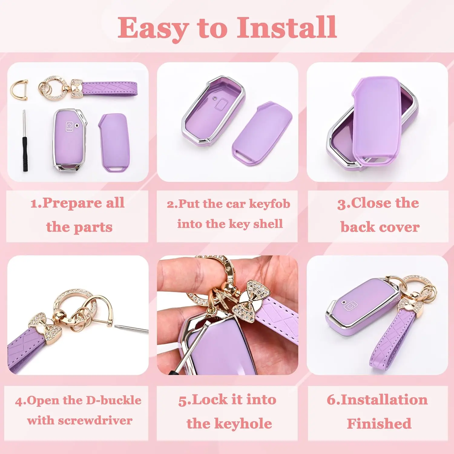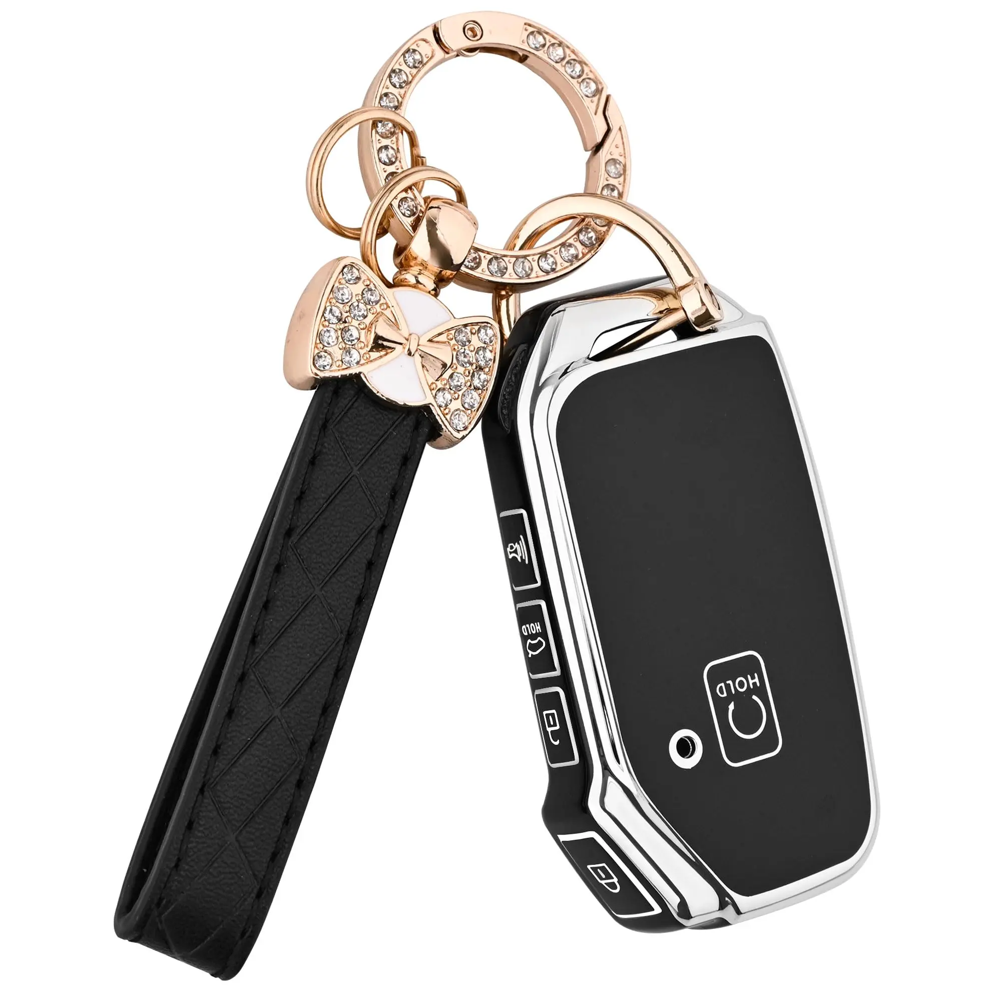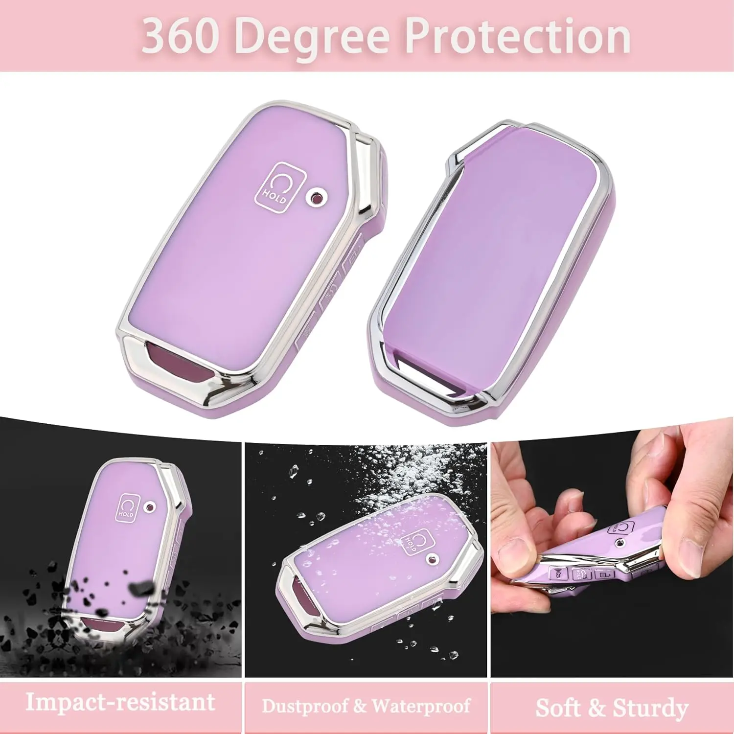 Elevate your Kia key fob with this adorable purple TPU cover. Perfect for Kia K5, Forte, Sportage, Soul, Seltos, Telluride, Sorento, and Niro. It features a 5-button design and a leather keychain. Soft TPU material ensures durability and comfort. 🚗