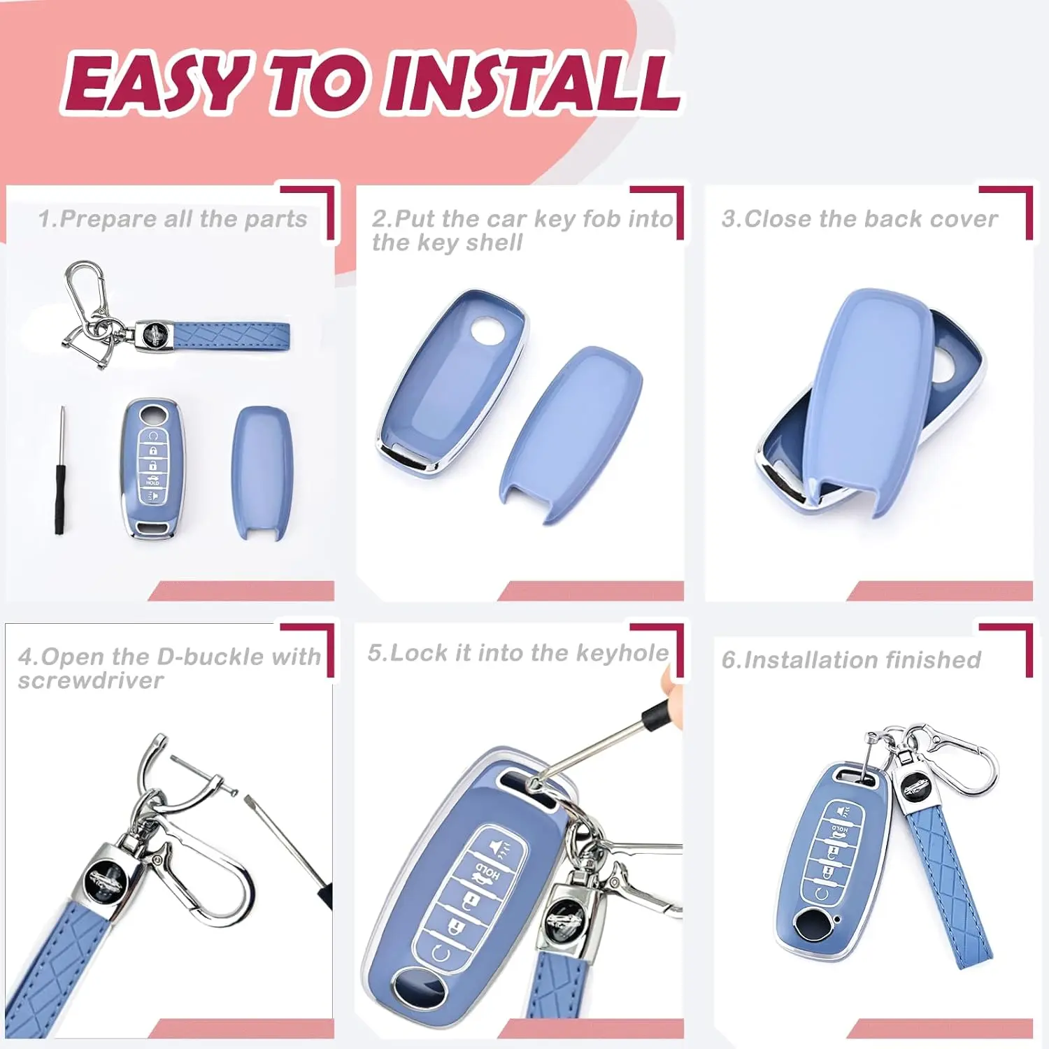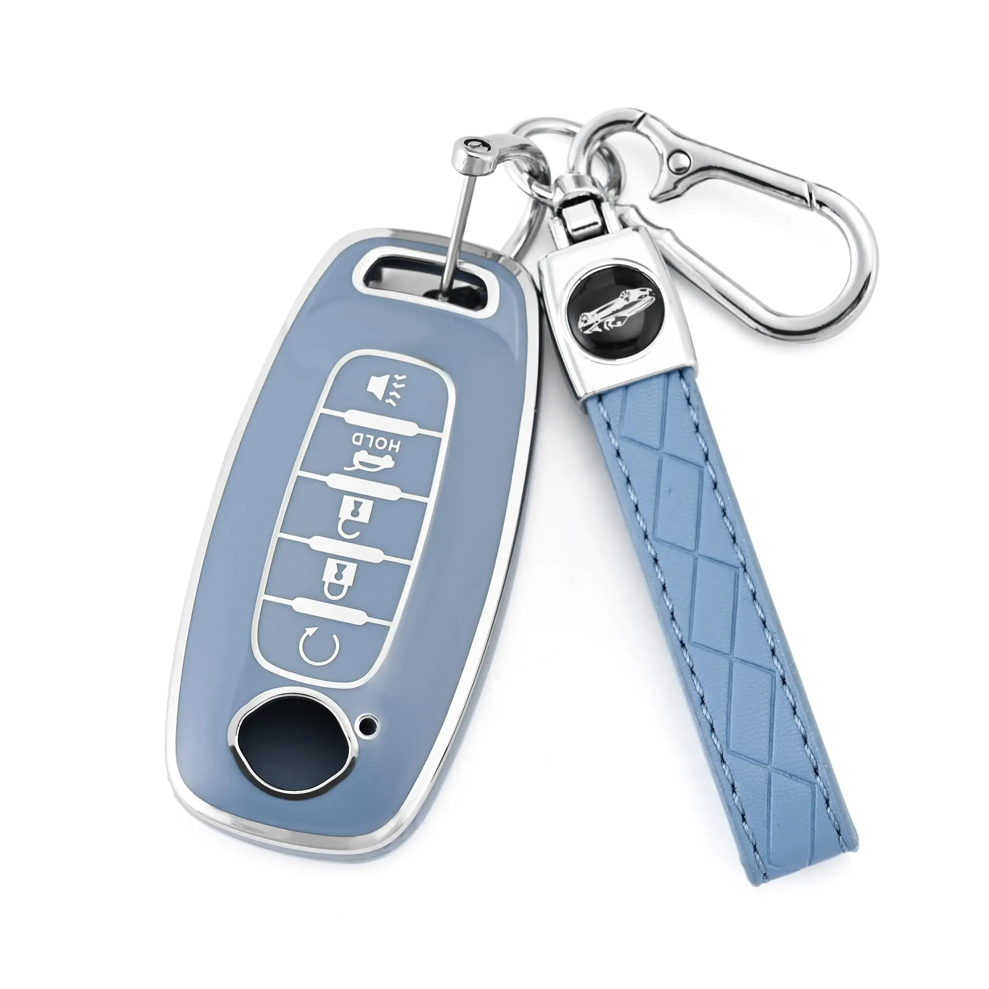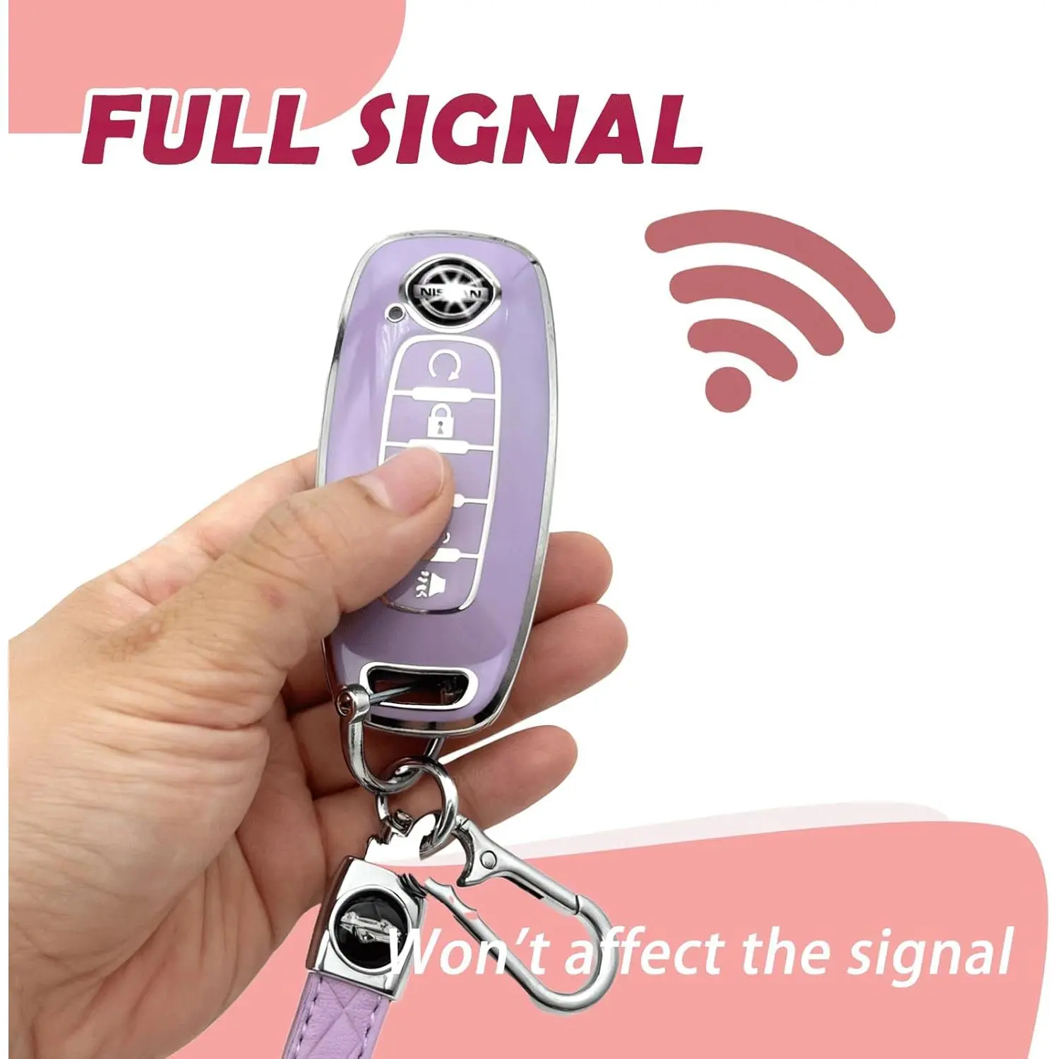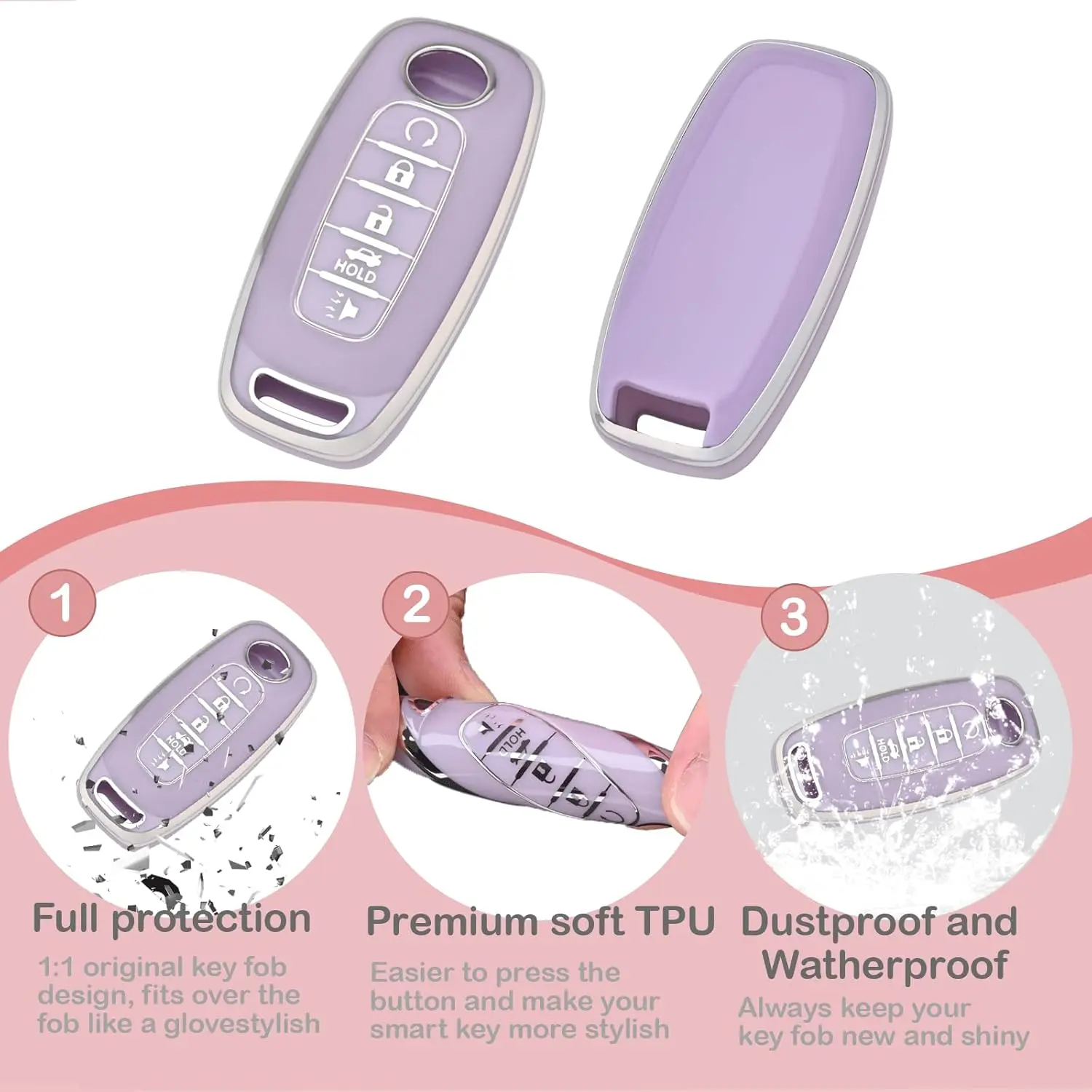 Key Fob Cover Case for Nissan Pathfinder Rogue Accessories | Fits 2023-2025 Sentra, Kicks, Versa | Soft TPU Protector for 5-Button Remote with Keychain - Purple