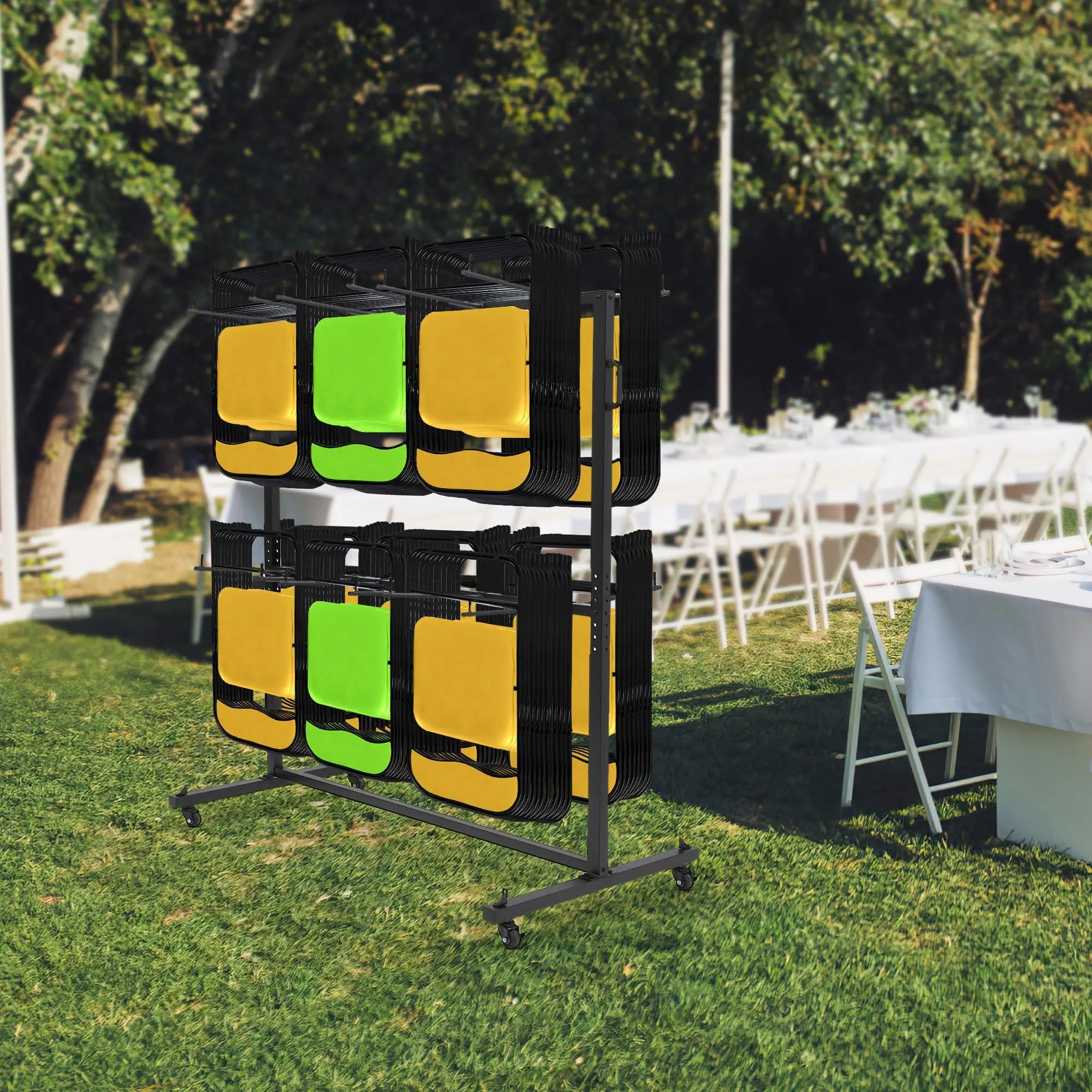 Adjustable Height Fits 24” to 36” Folding Chairs – With 6 adjustable height settings, this folding chair dolly securely accommodates standard plastic, resin, or metal folding chairs of varying sizes. No need for multiple racks for different chair types.