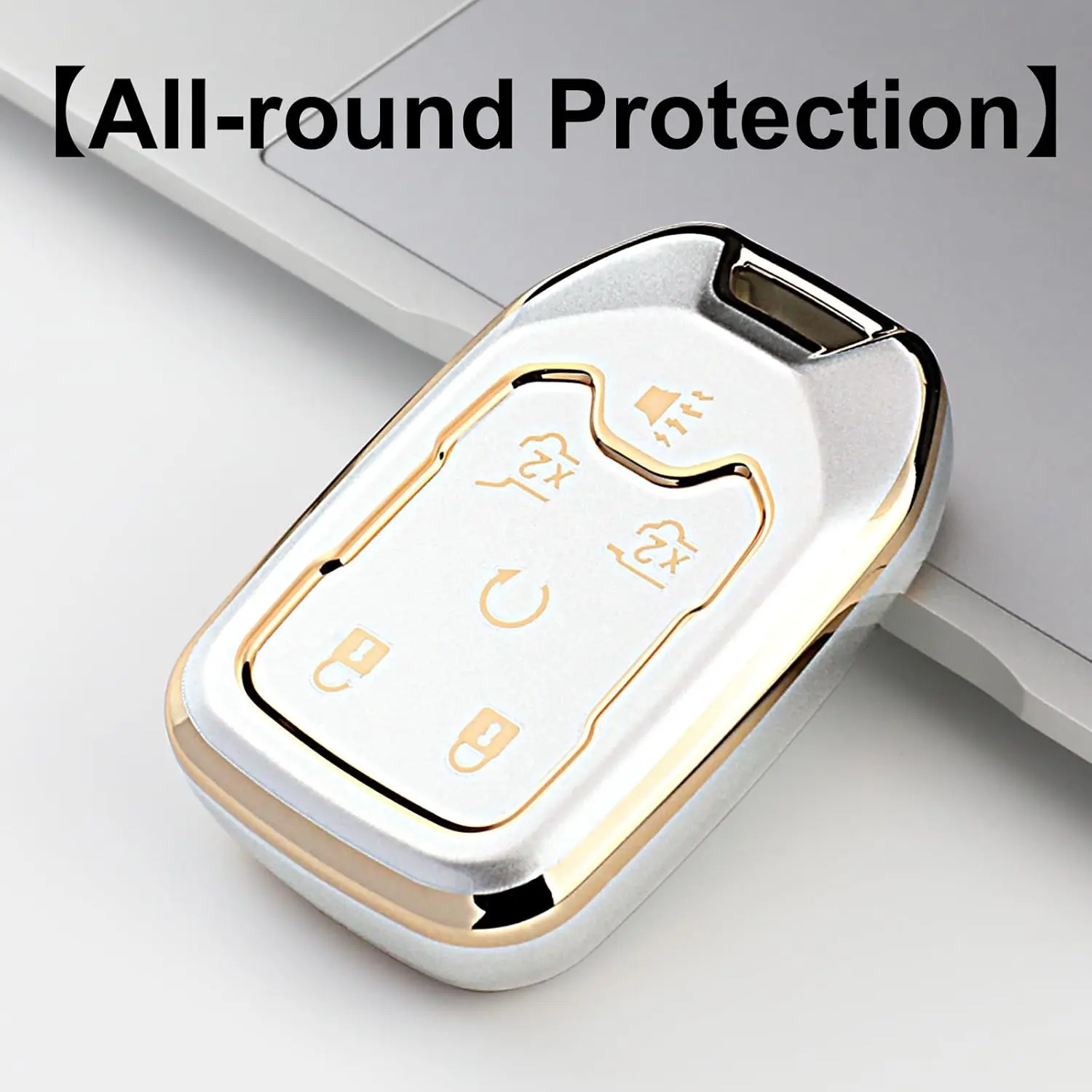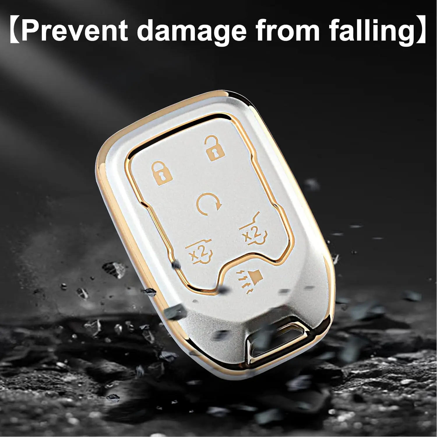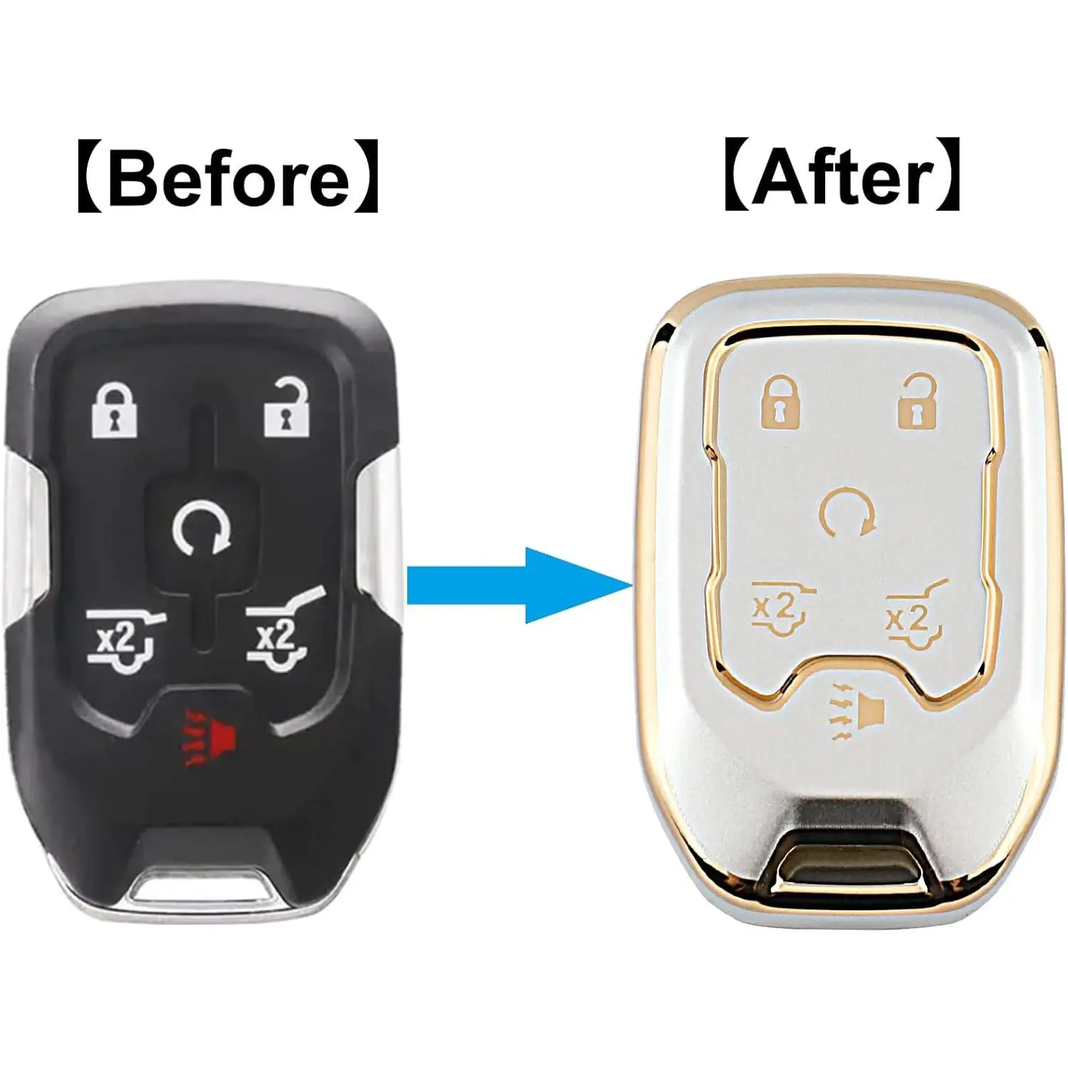 Key Fob Cover for Chevy Suburban Tahoe GMC Sierra Terrain Acadia Yukon Smart 6 Buttons Car Key.