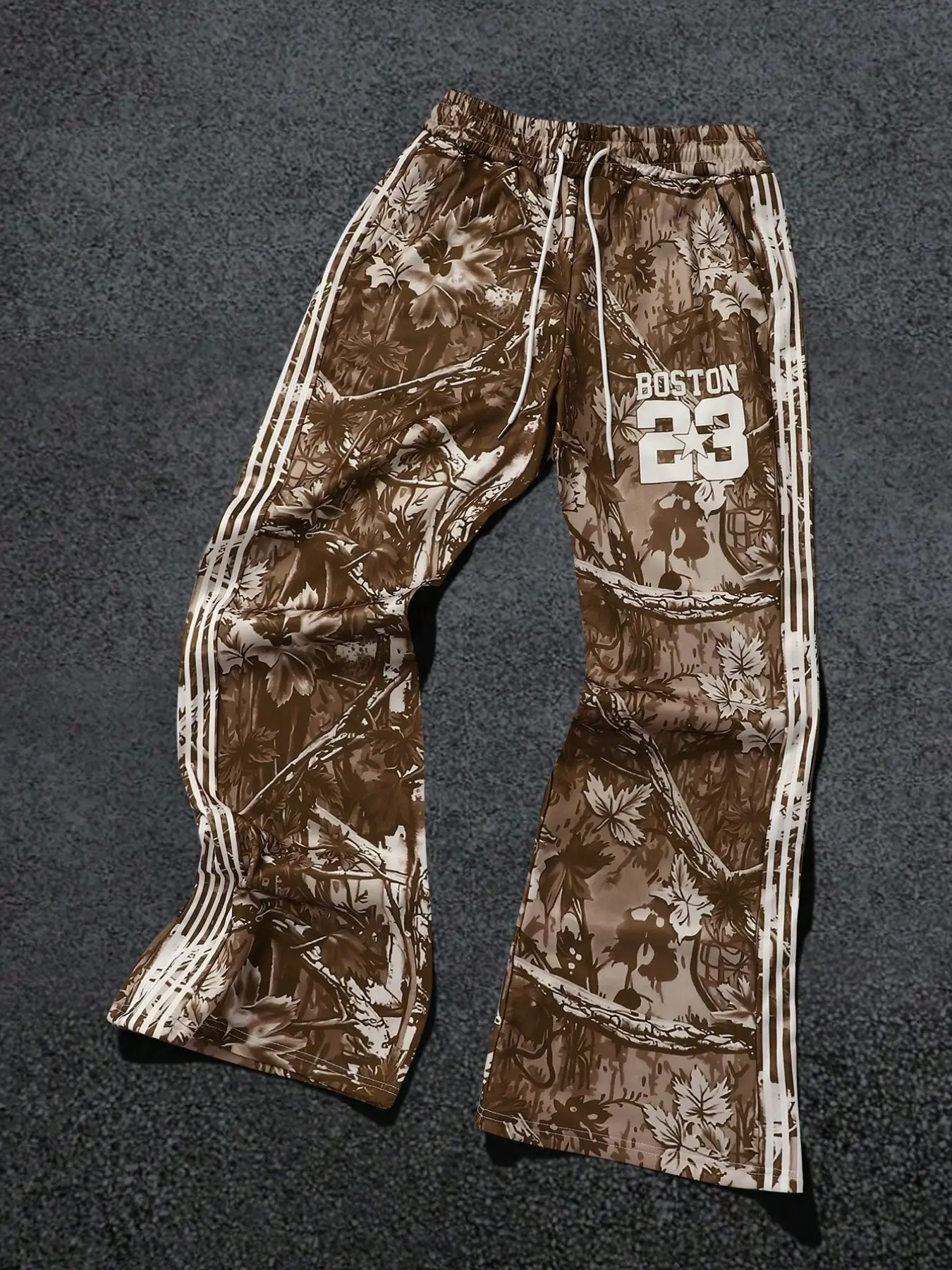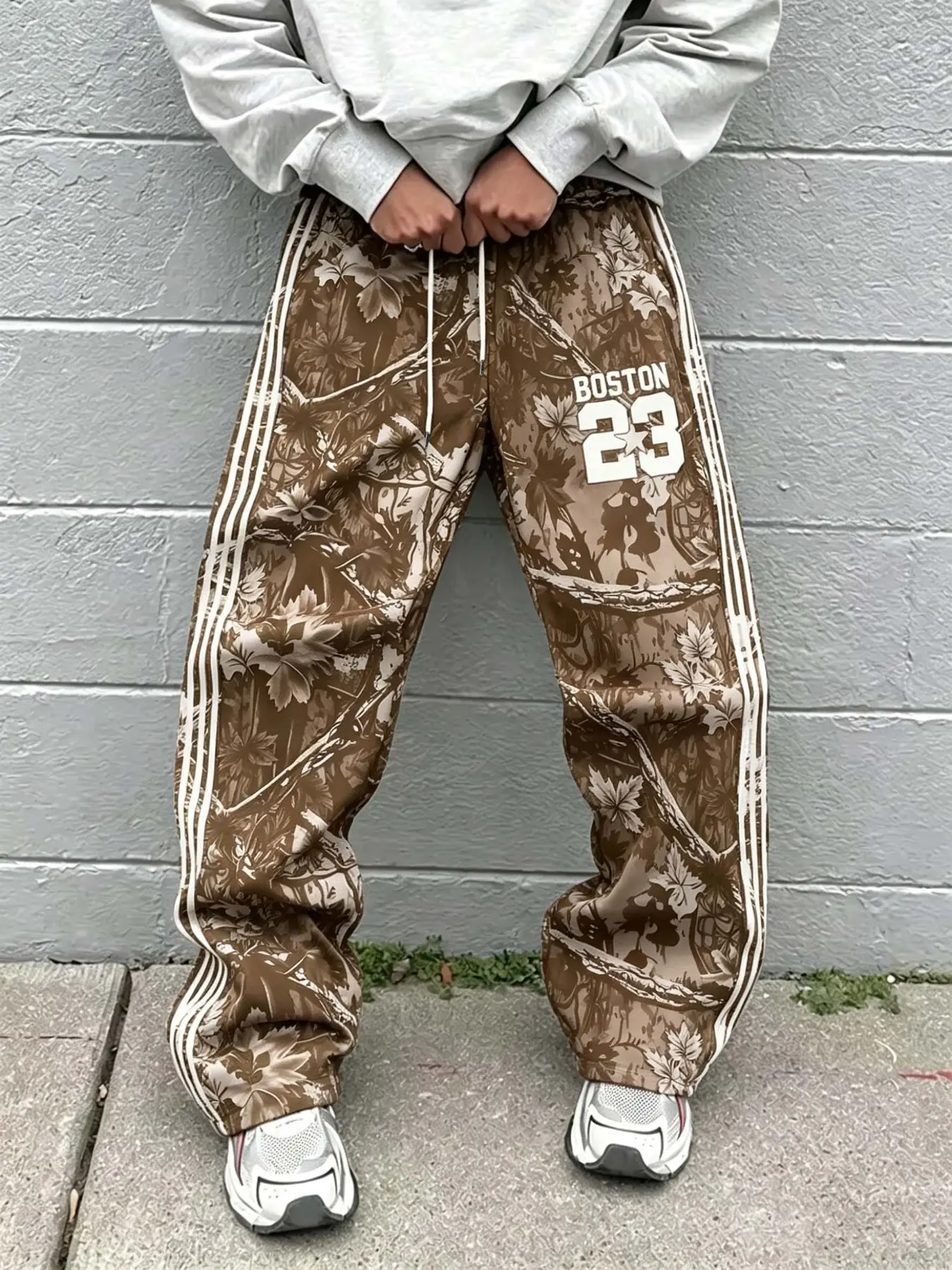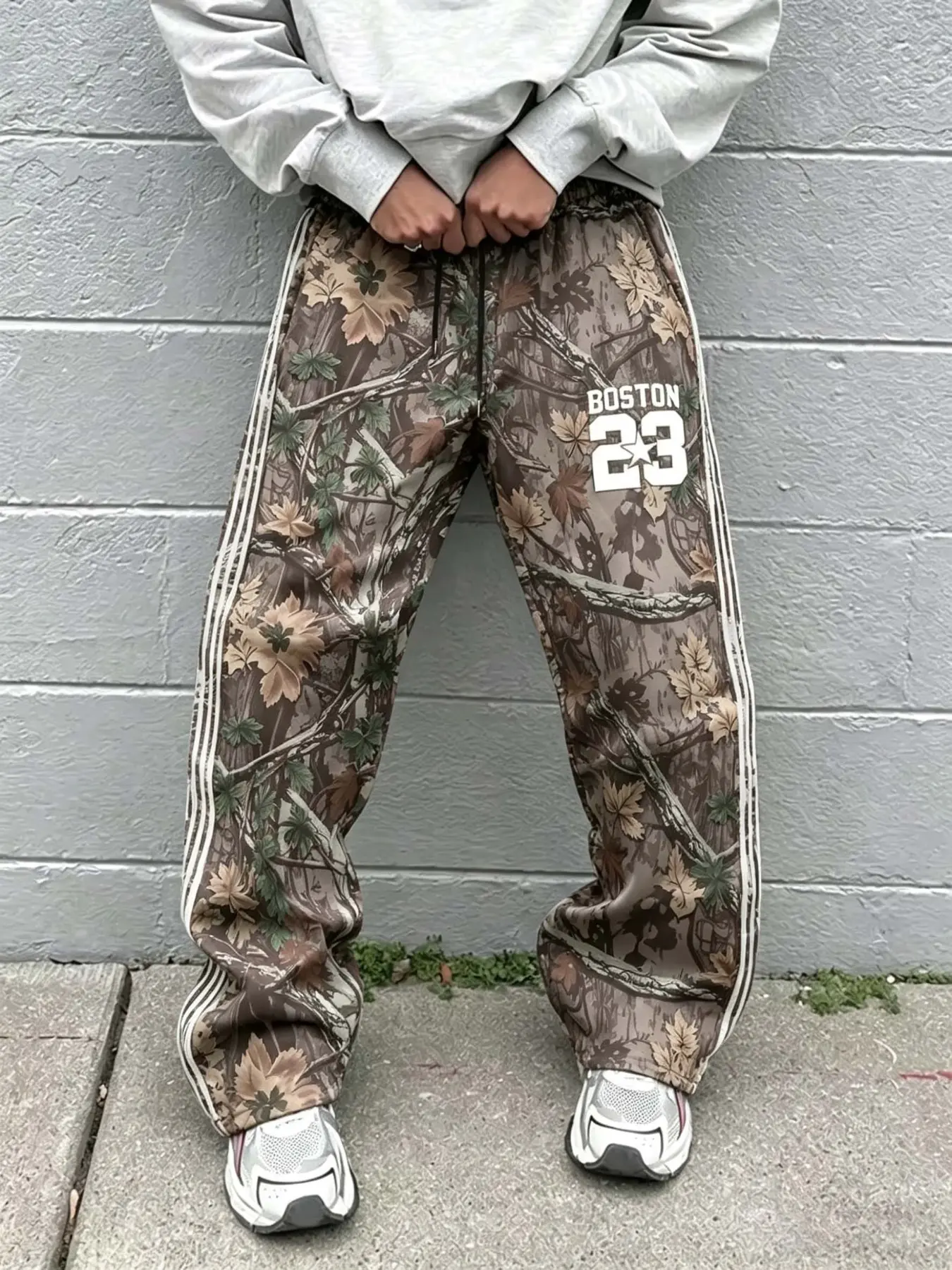 π₯ Virus Boston 23 Camouflage Tracking Pants π₯| Essential Y2K streetwear! Unique forest camouflage print with 3 stripe details and "BOSTON 23" logo | Comfortable wide leg fit, perfect for street style and daily styling π₯
