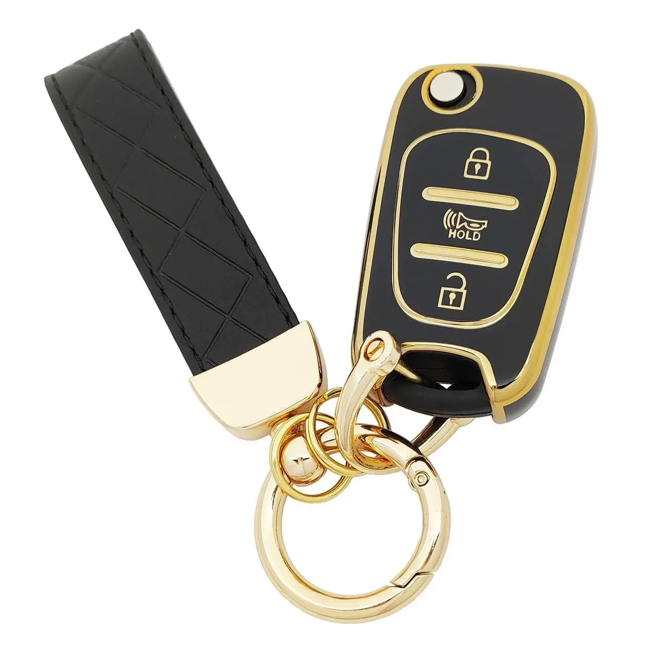 TPU Key Fob Cover with Leather Keychain, Compatible with Honda Accord Civic HR-V CR-V Pilot Sport SI EX EX-L Touring 2022 2023 2024 2025 2026, 4/5 Button, Black