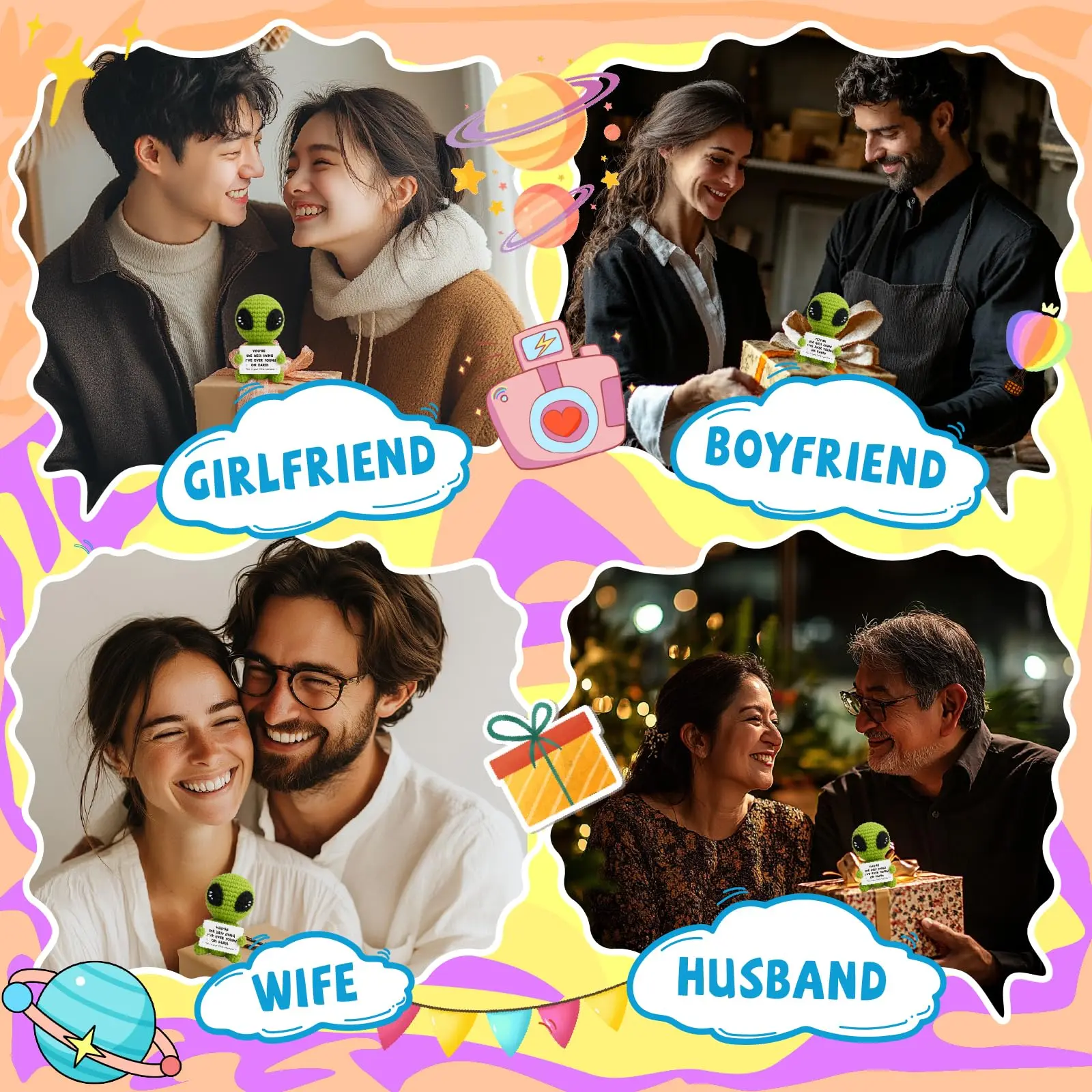 Cute Handmade Mini Knitted Alien Plush Emotional Support Stuffed Toy, Soft Stress Relief Doll for Christmas & Birthday Gifts for Women & Men, Teacher Appreciation Present, Bag Charm Keychain & Desk Decor, Unique Handcrafted Holiday Gift for Him, Her, Frie