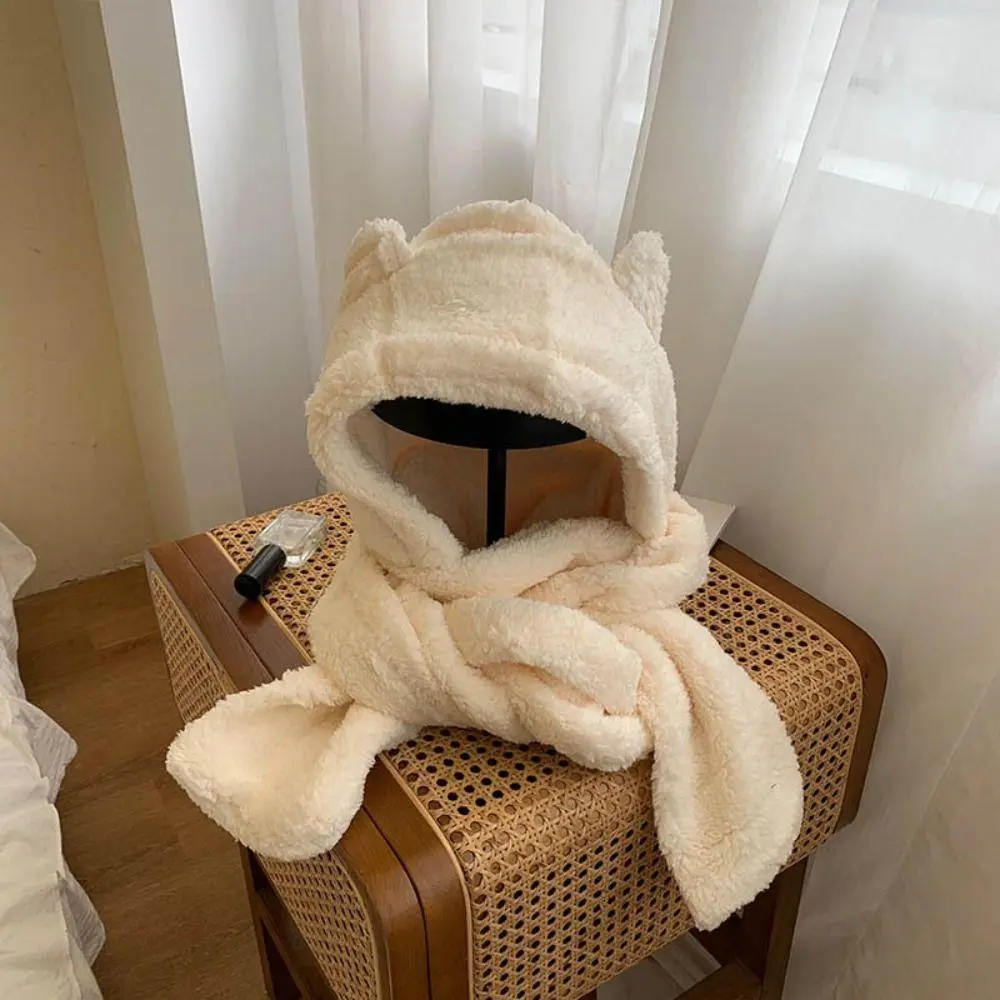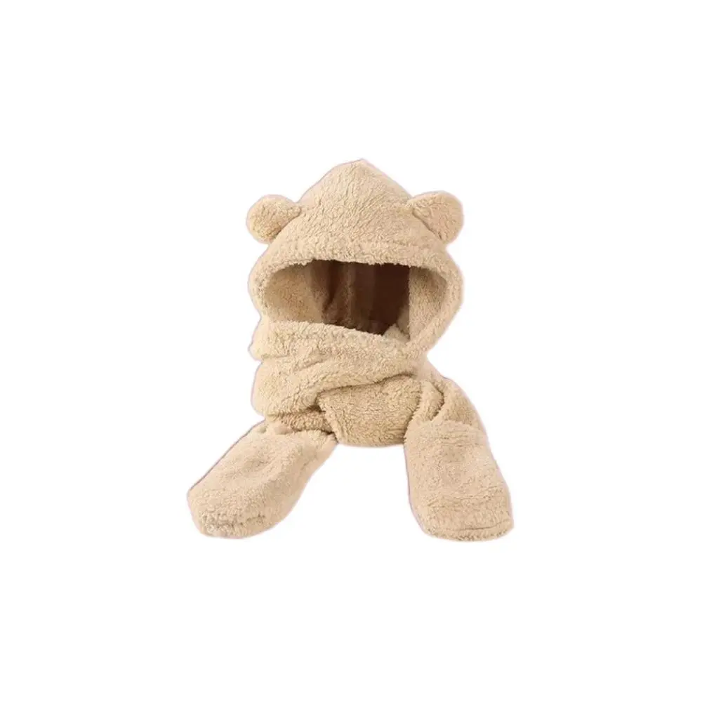 Unique 3 in 1 Bear Ear Plush Beanie Thickened Ear Protection Plush Scarf Hat Gloves Earmuffs Warm Fleece Scarves Hat Autumn