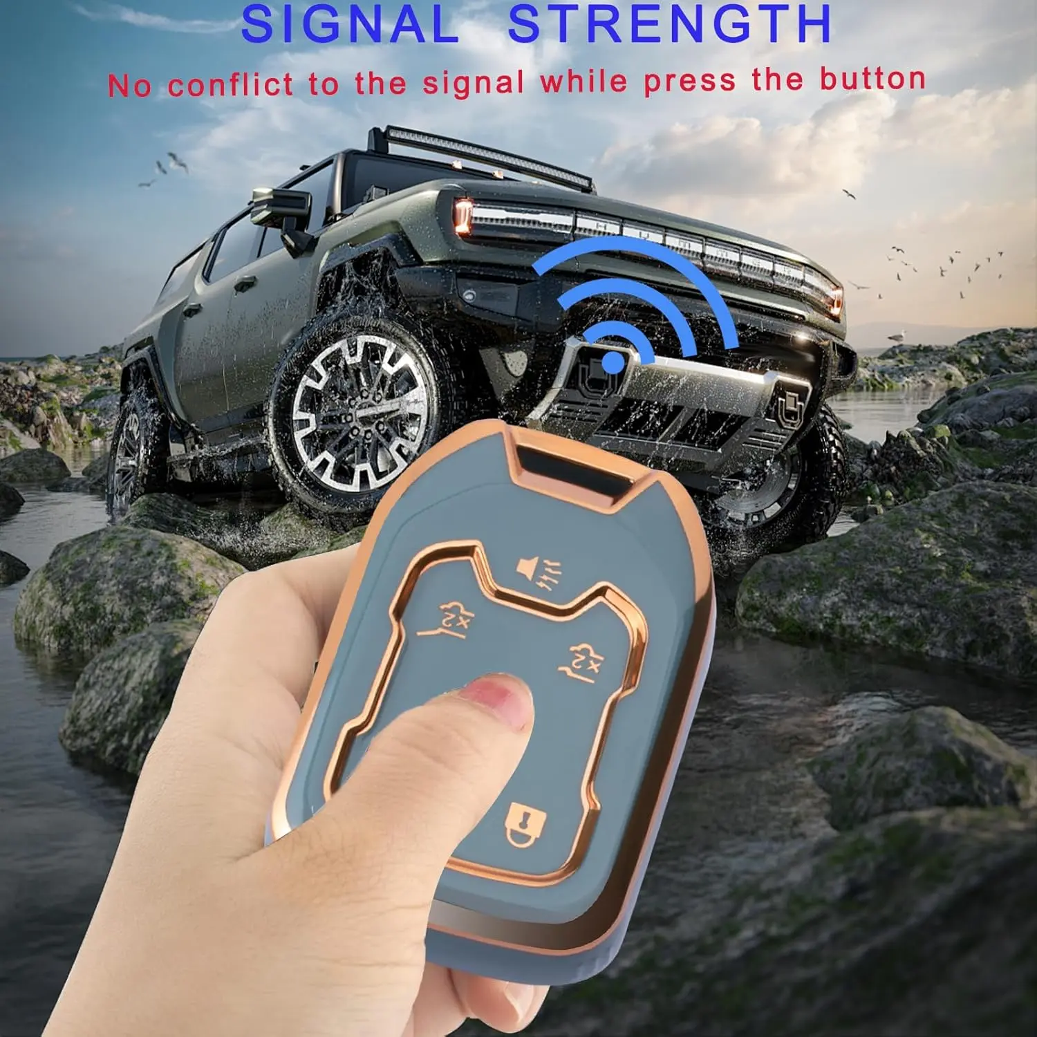 For GMC key fob shell is made with premium TPU. Super thin, soft, trending looking and pretty durable. and won't affect the key signal.