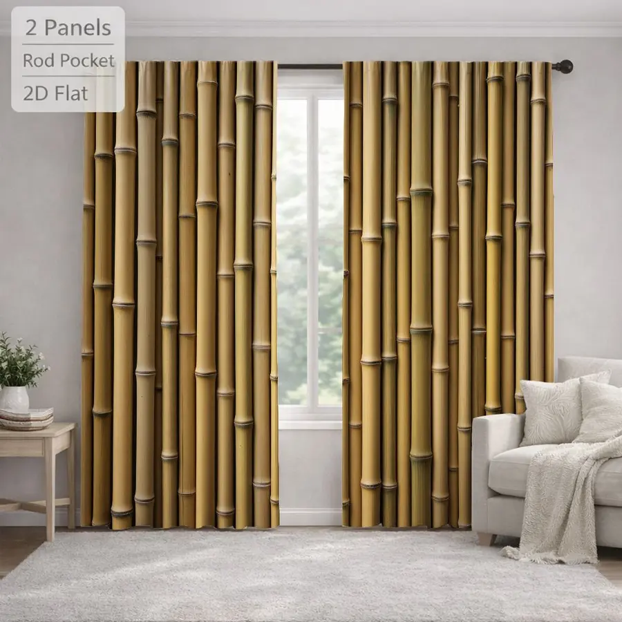 2Pcs Natural Style Bamboo Pattern Sun Blocking Curtains Digital Printed Rod Pocket, Window Treatment For Bedroom Office Kitchen Living Room Study Home Decor