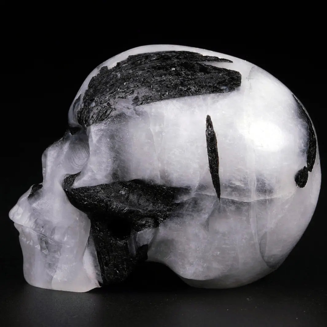 2.0 " Black Tourmaline Quartz Carved Crystal Skull,Super Realistic, Crystal Healing