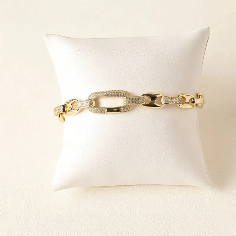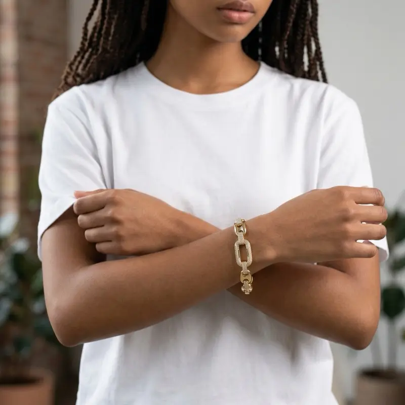 14K Gold Plated Cuban Link Bracelet with CZ Stones 7" + 2" Extension Durable Bold Eye Catching Perfect for Everyday Wear or Special Occasions