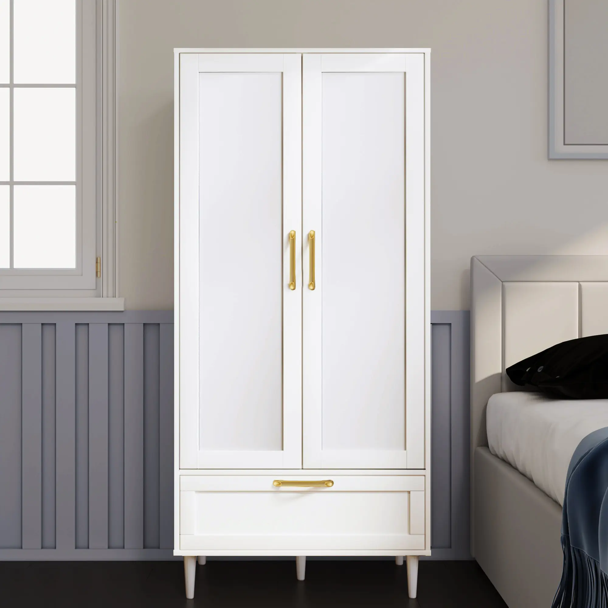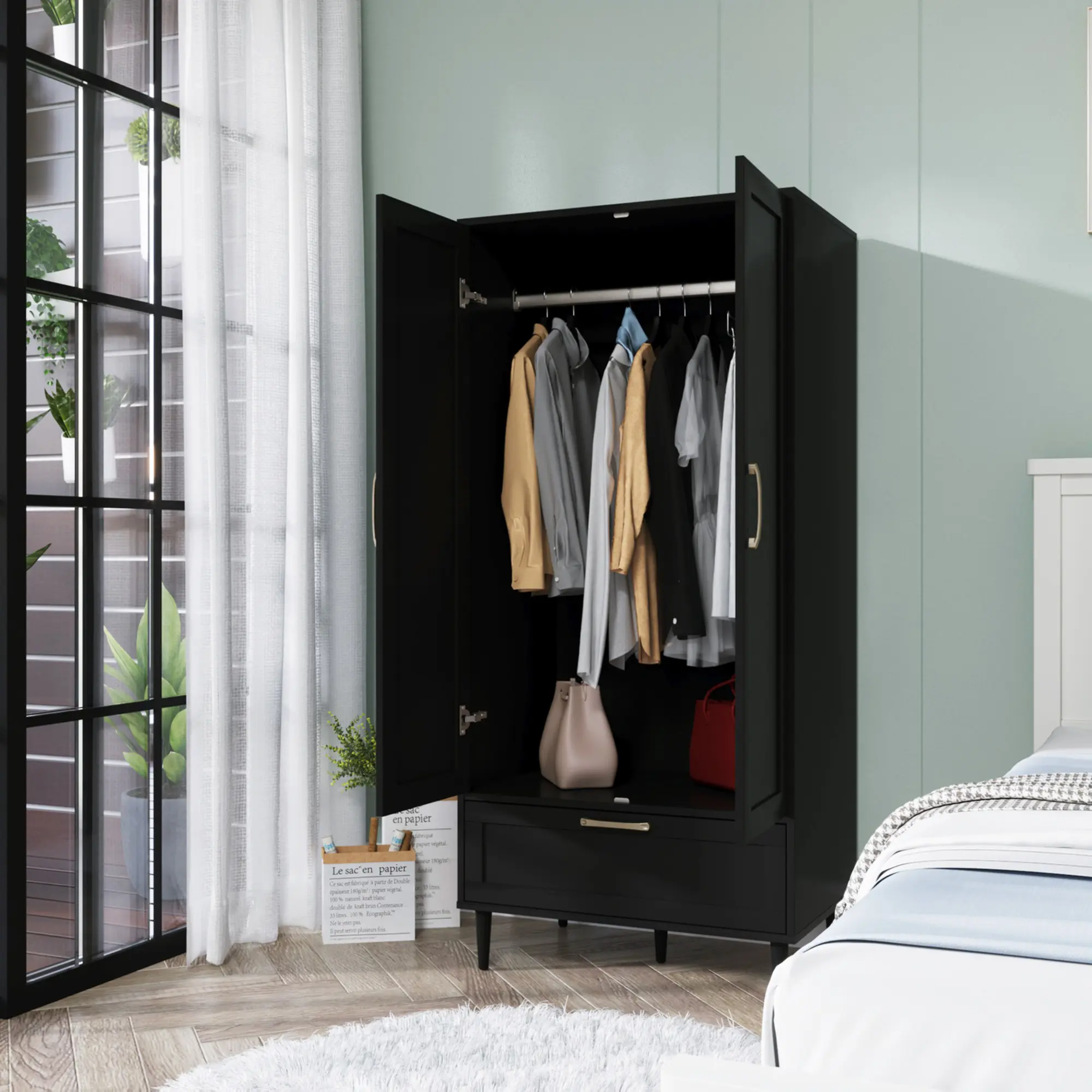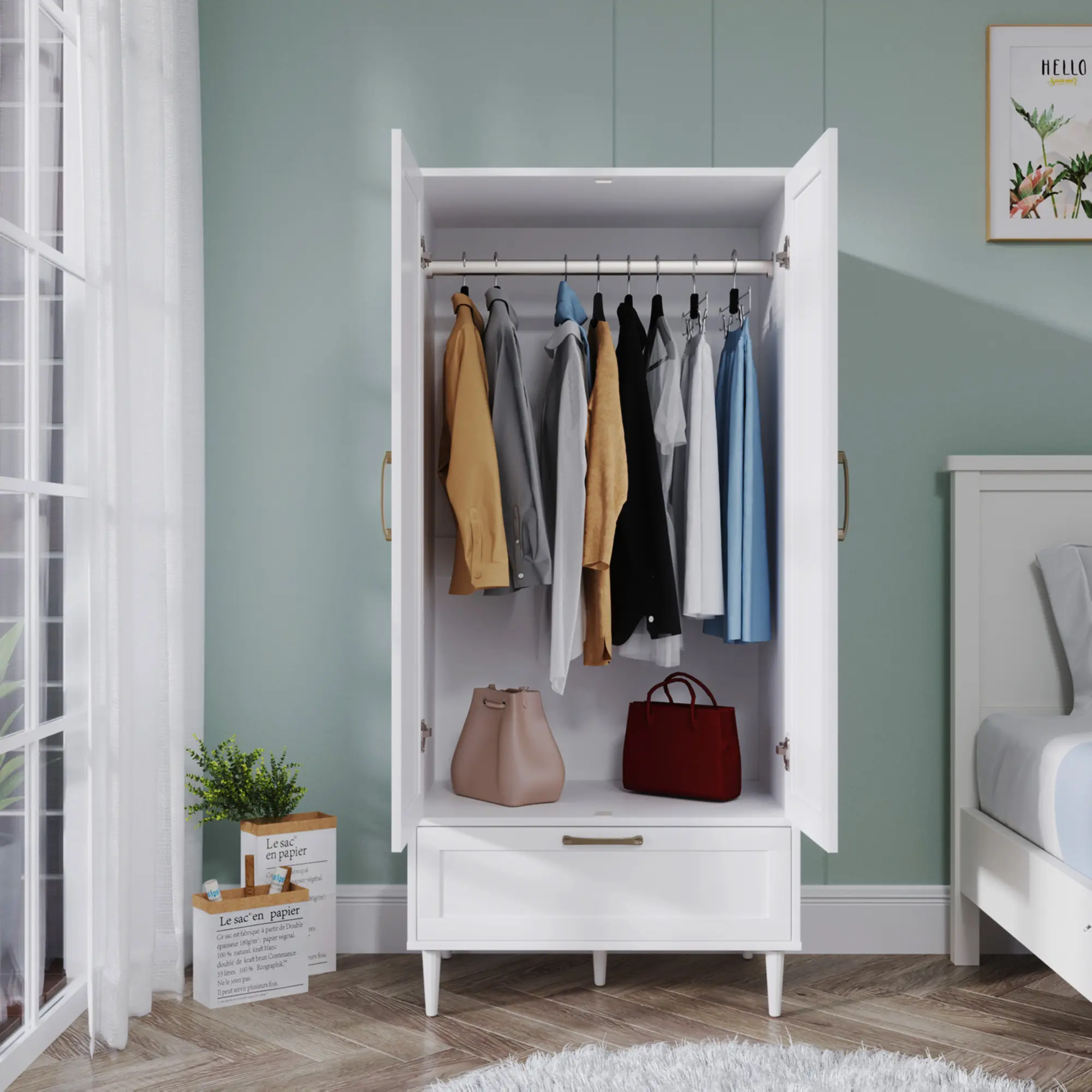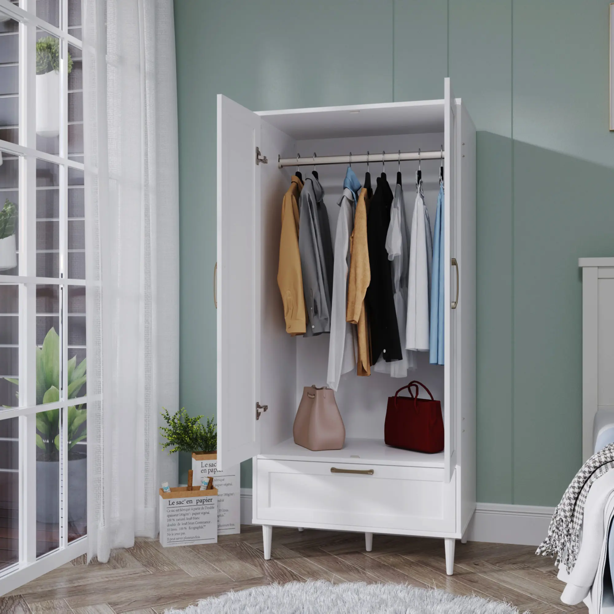Wardrobe Closet With 2 Doors & Drawer Armoiresand Wardrobes With Shelves And Hanging Rail Freestanding Wooden Wardrobe Cabinet For Bedroom