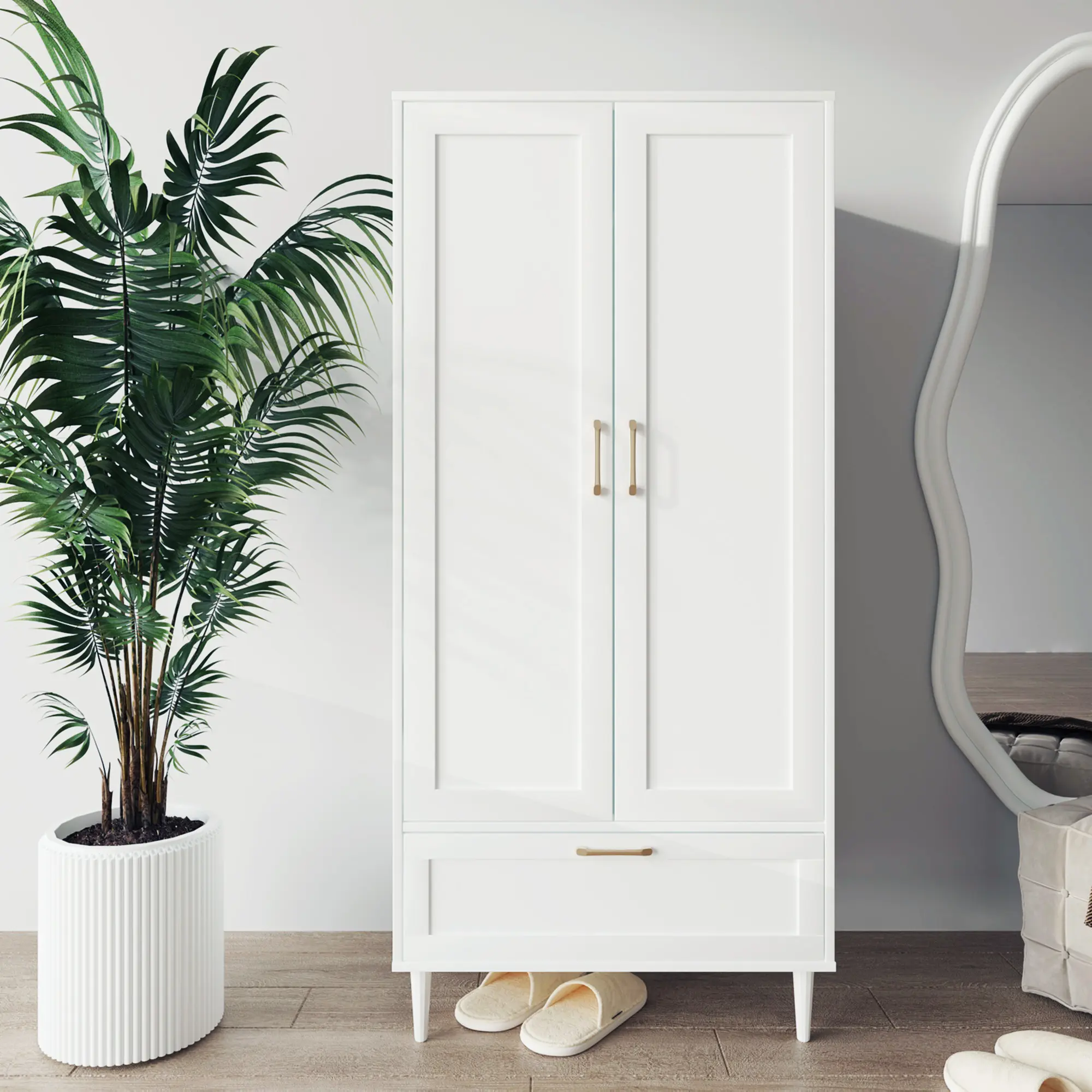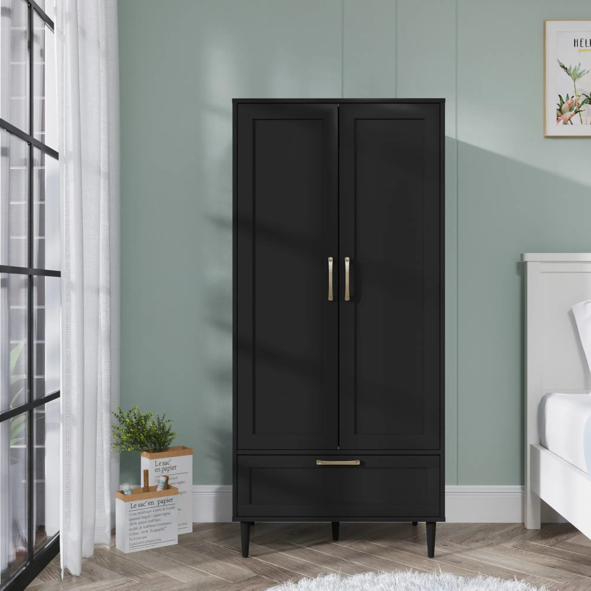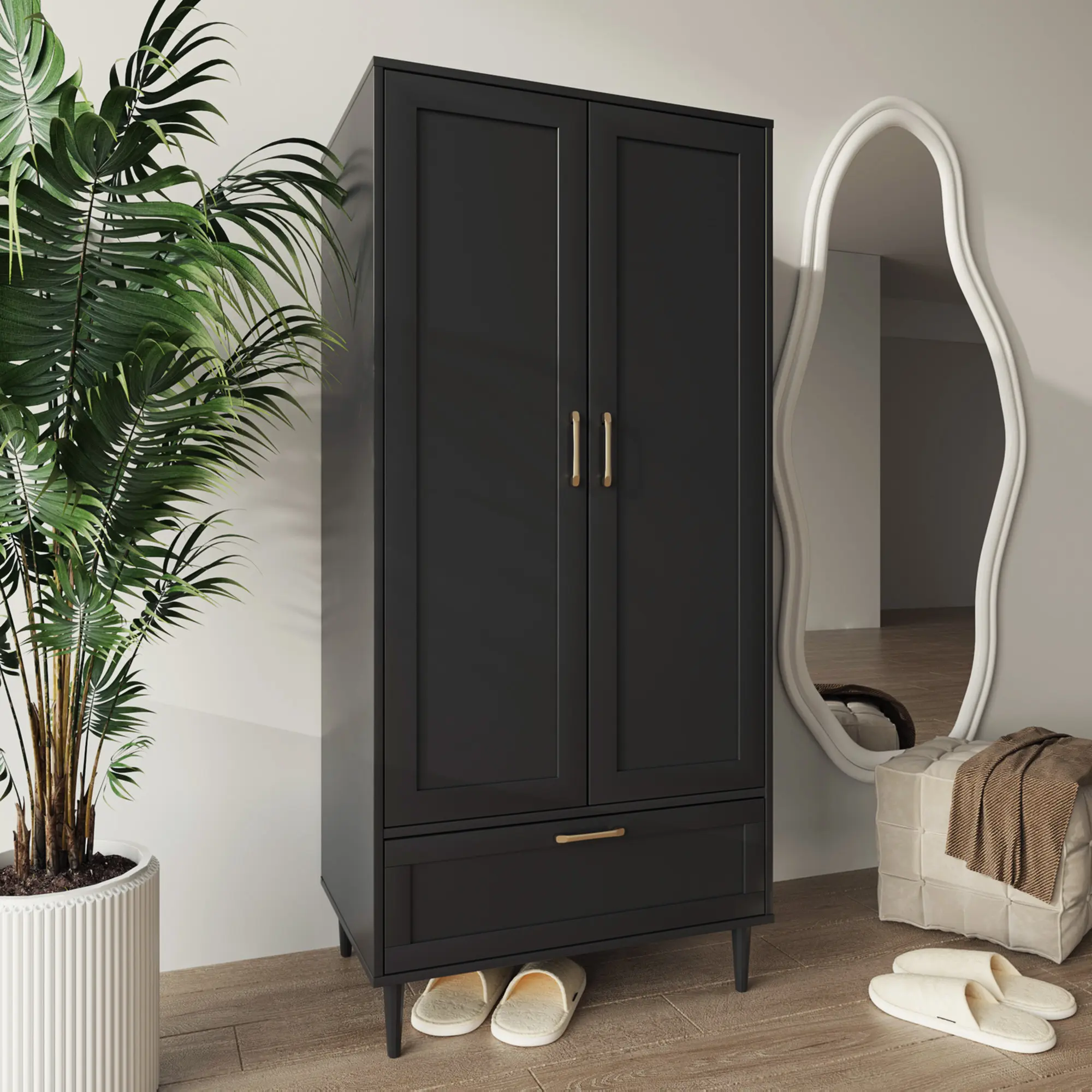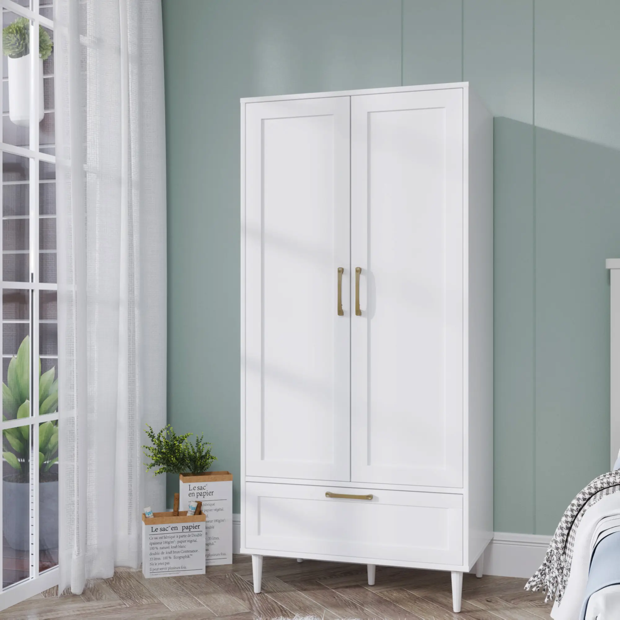 Wardrobe Closet With 2 Doors & Drawer Armoiresand Wardrobes With Shelves And Hanging Rail Freestanding Wooden Wardrobe Cabinet For Bedroom