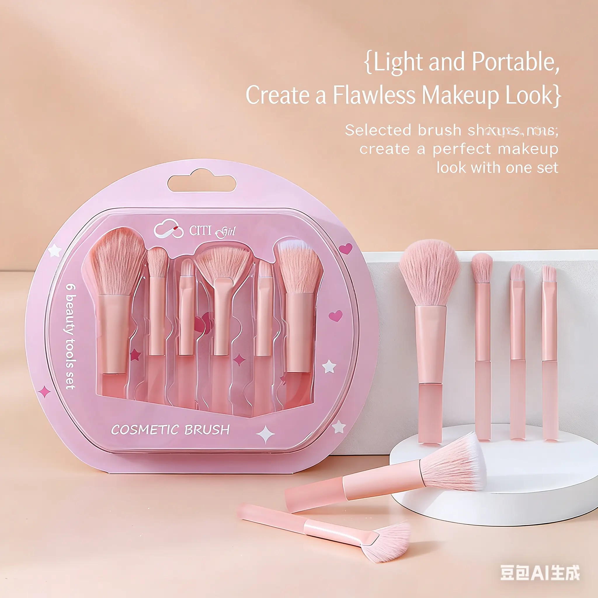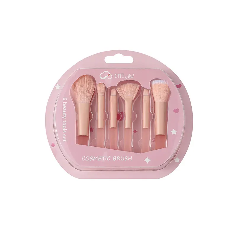 6Pcs Candy Makeup Brush Set Soft Bristles - Powder, Blush, Highlight, Eyeshadow, Concealer & Brow Brushes