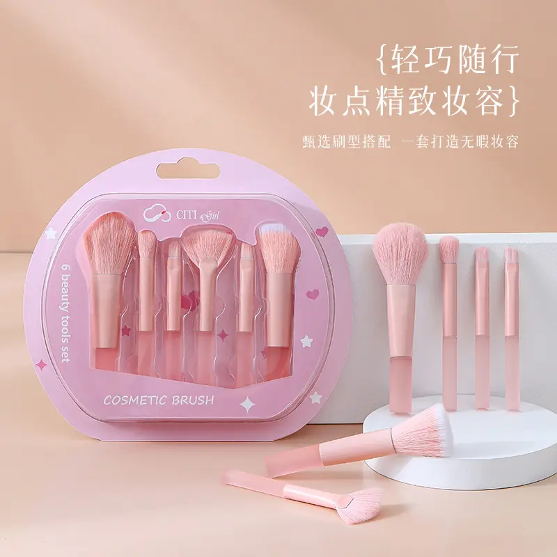 6Pcs Mini Travel Makeup Brush Set Soft Bristles - Powder, Contour, Concealer, Eyeshadow & Blending Brushes