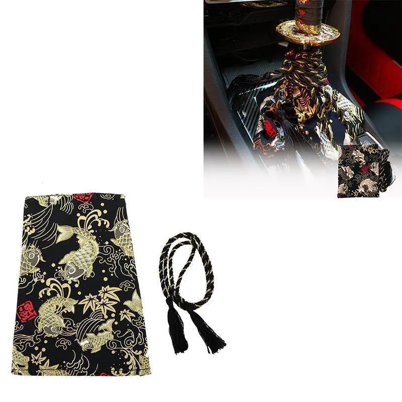 Universal Car Accessories Pattern Style Canvas Katana Shift Lever Knob Cover Dust Cover Racing Samurai Sword Shift Knob Collars