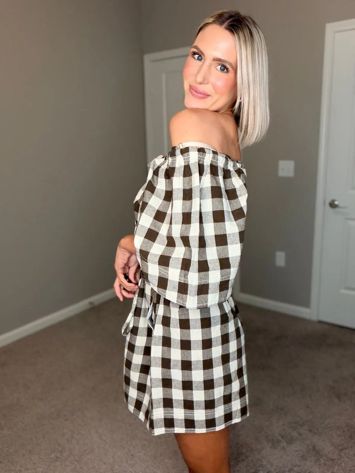 Classic and playful, this gingham romper brings an easy, everyday feel with a flattering fit. The button front detail and adjustable waist tie create a comfortable silhouette while adding a touch of charm. Finished with pockets for a functional piece you’ll reach for all season long.