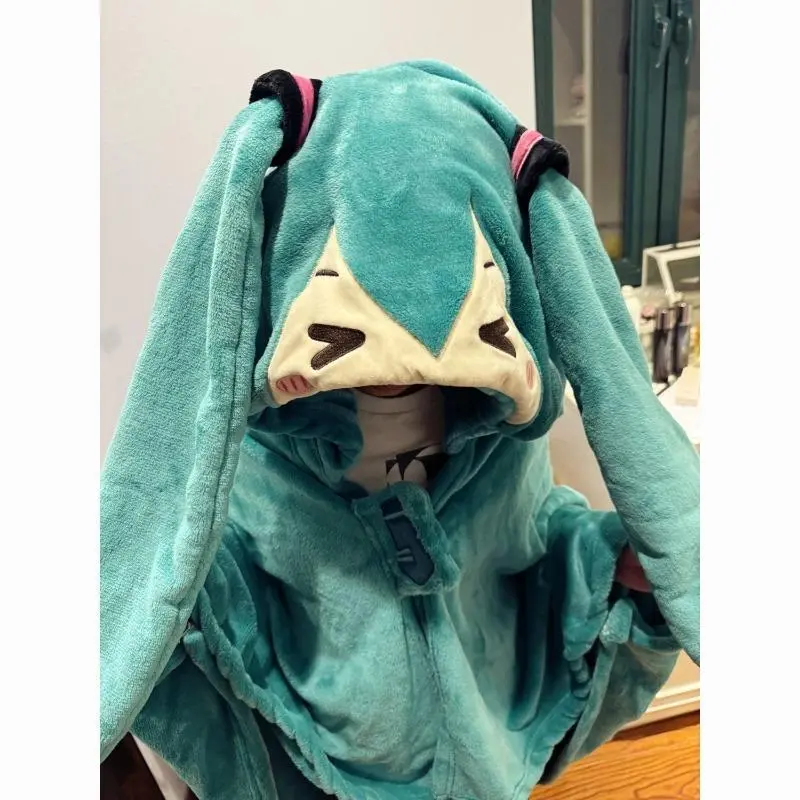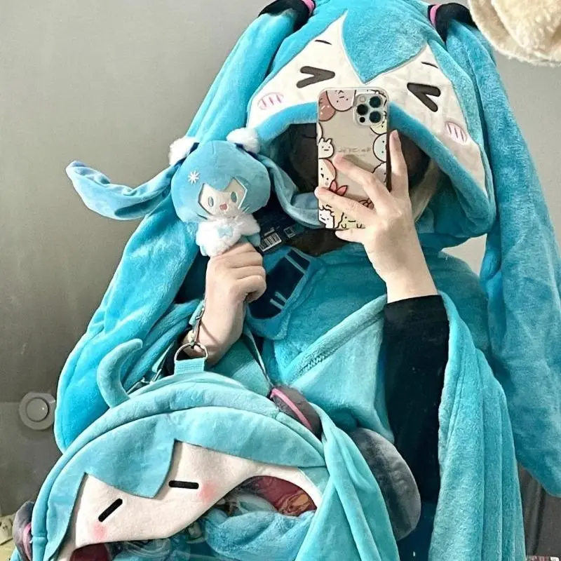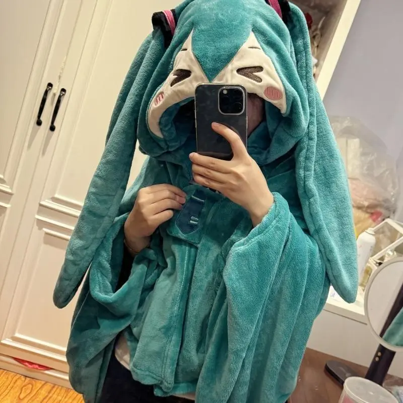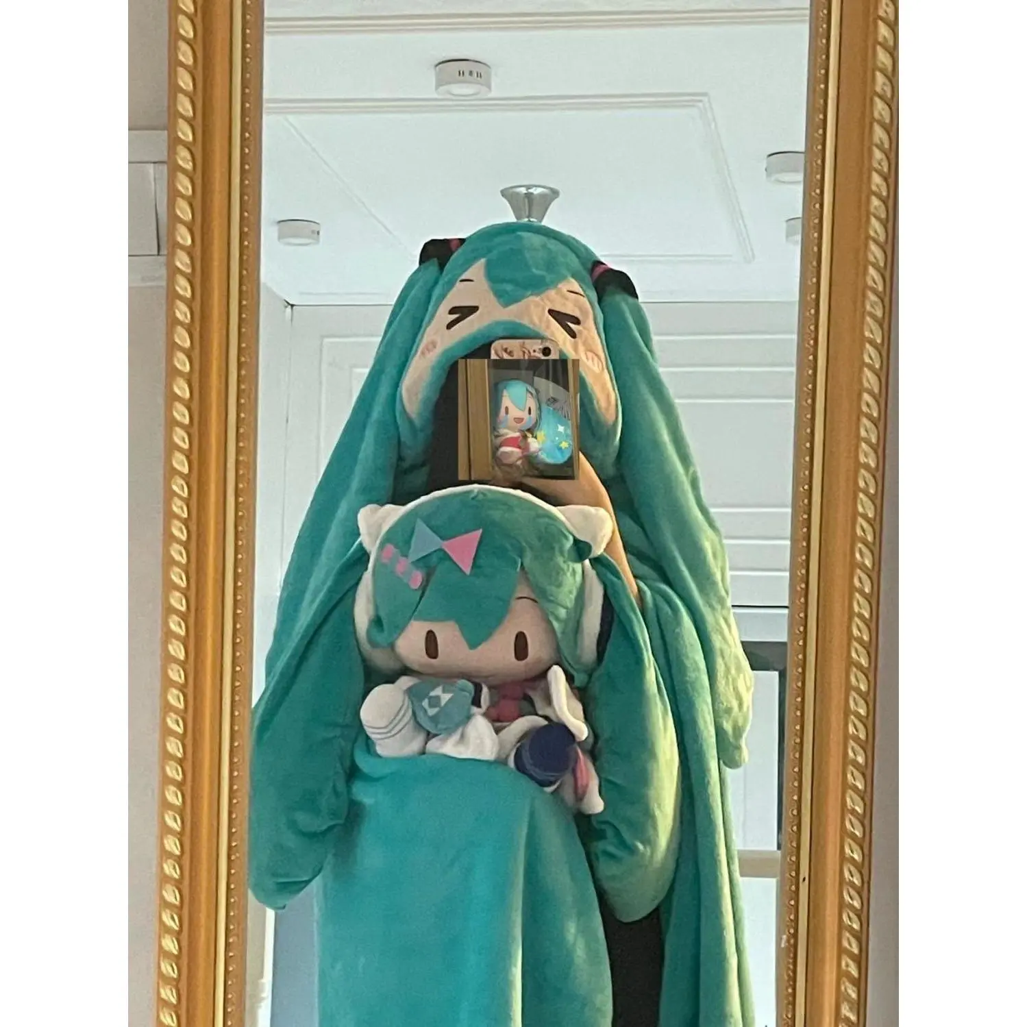 5. Hatsune Miku anime peripheral two-dimensional air-conditioning blanket creative cartoon cute plush hooded cloak holiday gift