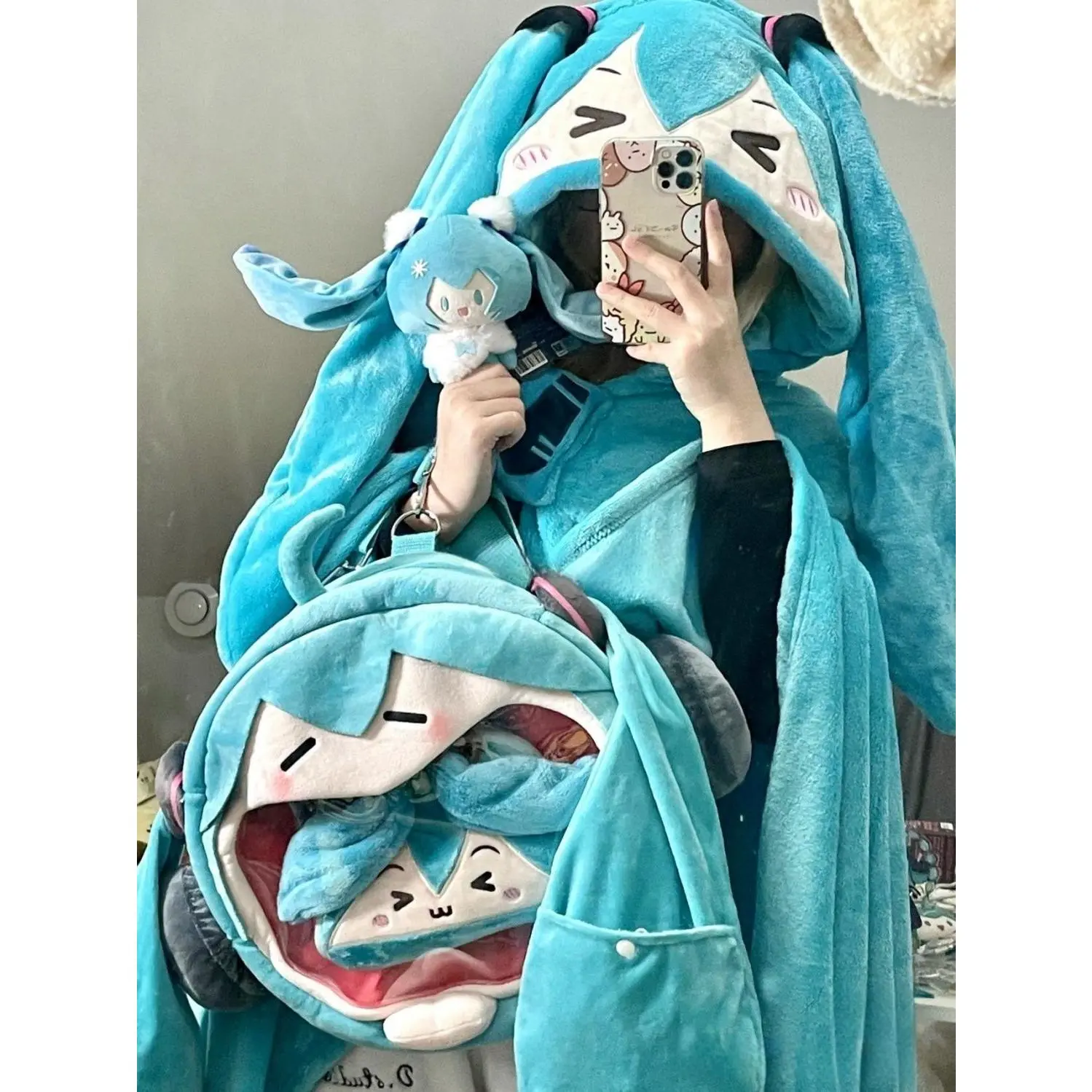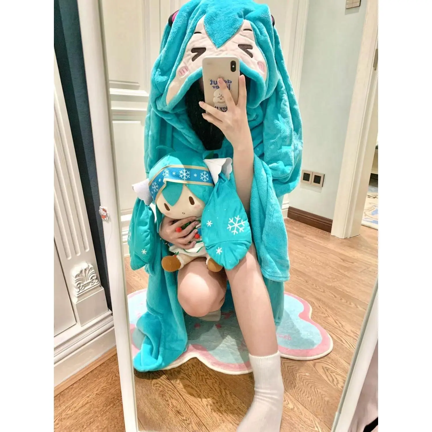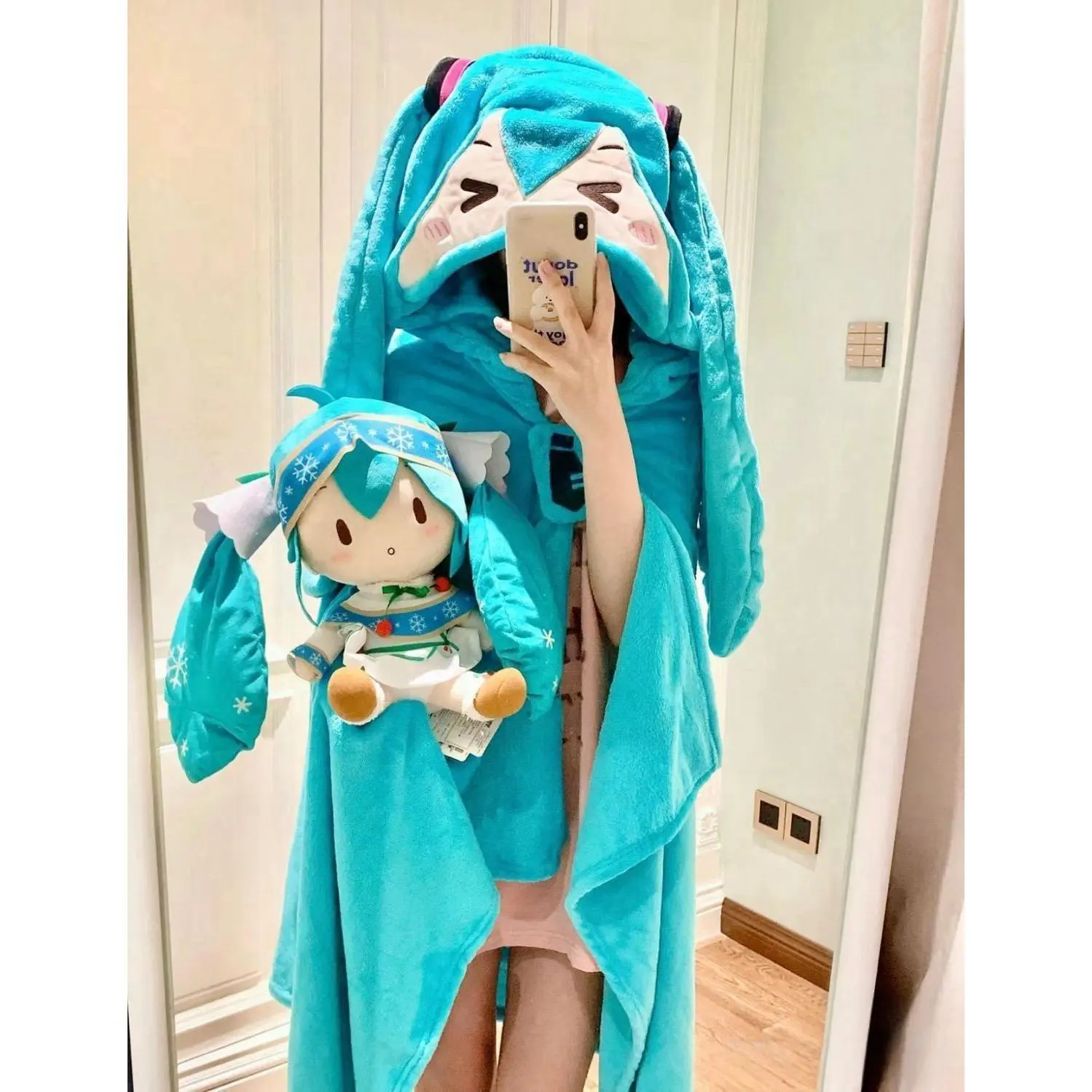 Hatsune Miku anime peripheral two-dimensional air-conditioning blanket creative cartoon cute plush hooded cloak holiday gift