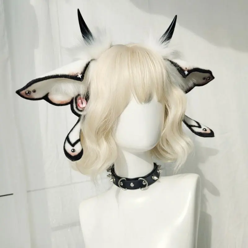 Halloween Devil Horns Headpiece Fantasy Creature Cosplay Convention Costume Hairband Realistic Faux Fur Moth Hair Accessories