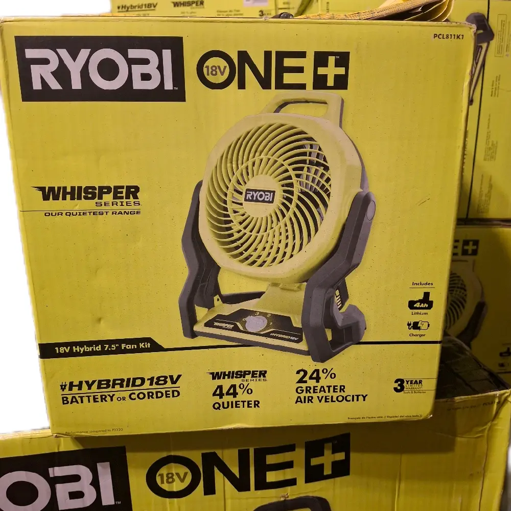 Ryobi 18V One Plus Whisperer Fan Kit Corded or Battery 7.5 Hybrid 18V Fan Kit 44% Quieter 24% Greater Air Velocity