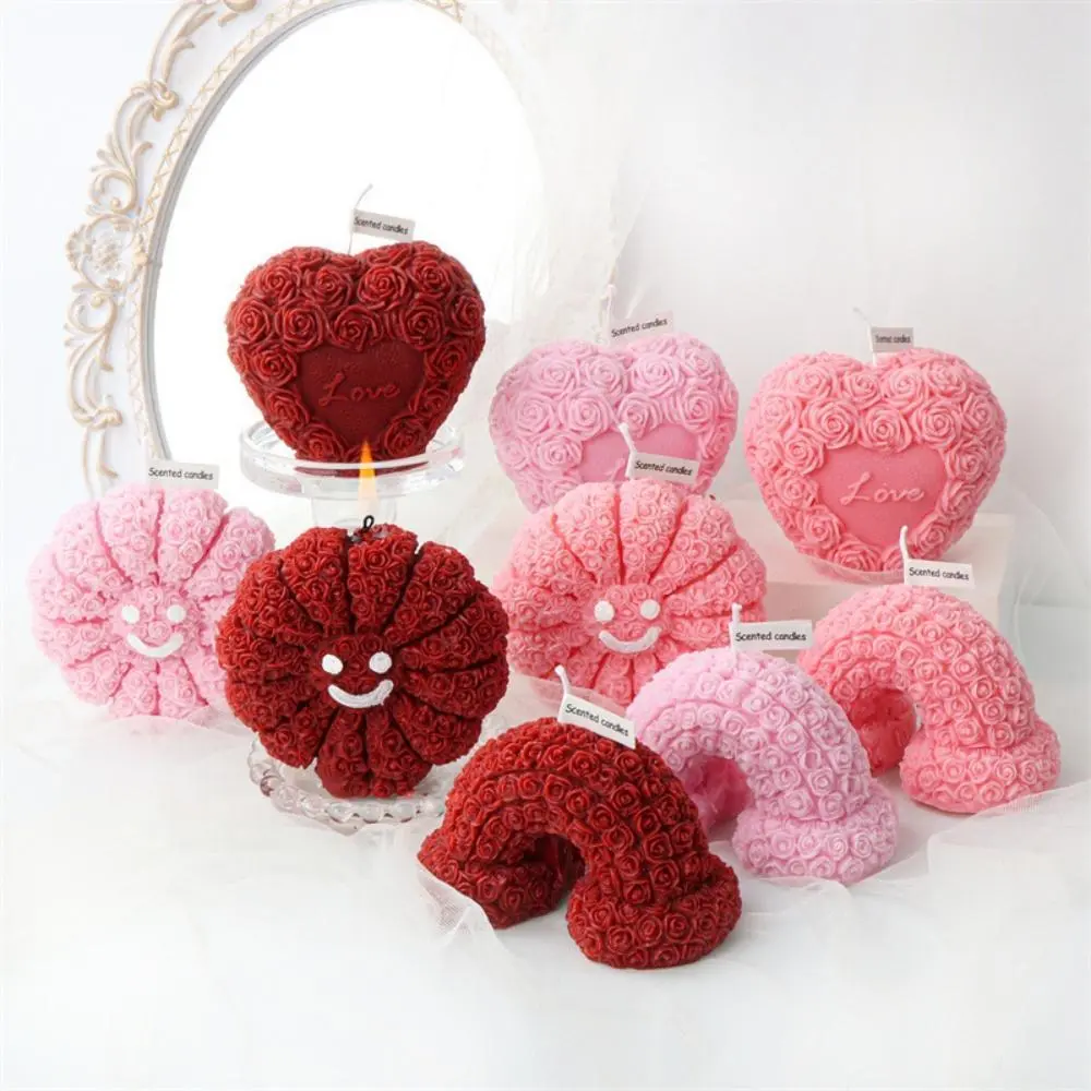 5. Beautiful Love Rainbow Roses Flowers Scented Candle Mother's Day Festival Romantic Wedding Supplies Birthday Elegant Gift