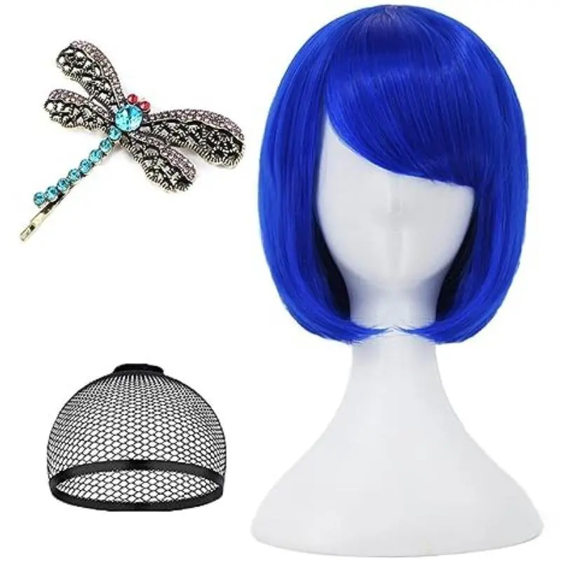 Women Suit: Coat with Hat Men Suit: Coat+gloves Wig: blue wig+hair clip