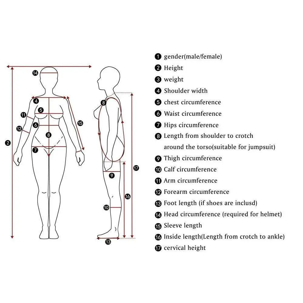 About size:Please measure your height, chest, waist and hip, and then choose the size according to our size chart, please do not only refer to your daily clothing size or only refer to your height to choose the size. Full set Components: