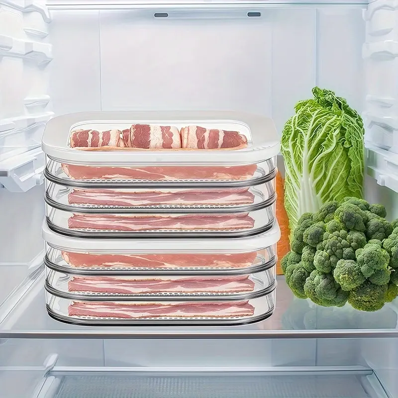 1/2/3/4-Layer Stackable Food Storage Containers, Airtight & Leak-Proof Fridge Organizer. Reusable for fridge and freezer, perfect for meat, cheese, beef rolls, shrimp and more. Practical and stylish kitchen storage accessory.