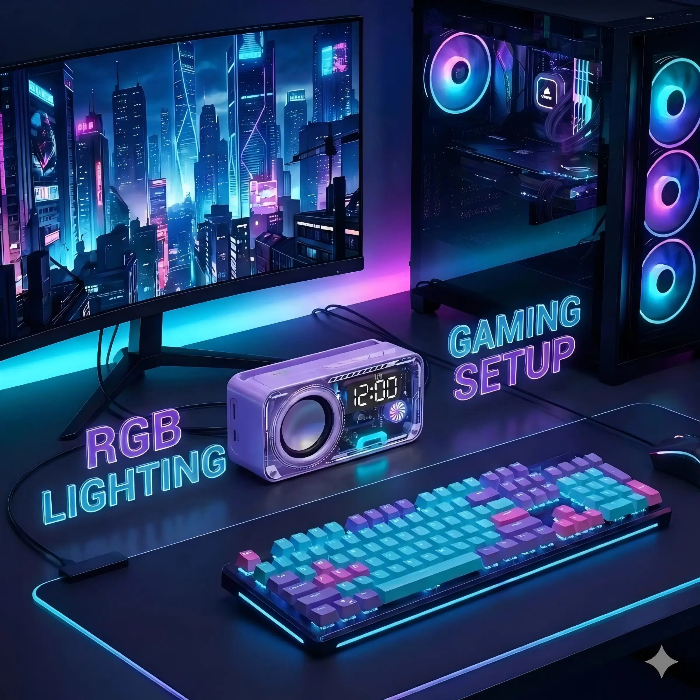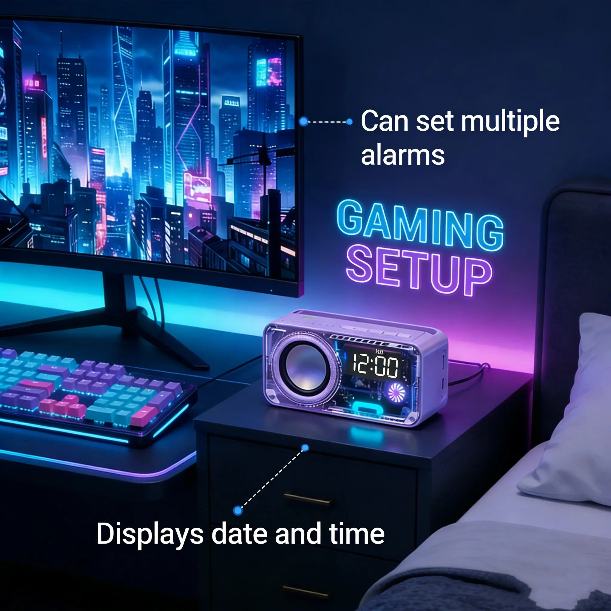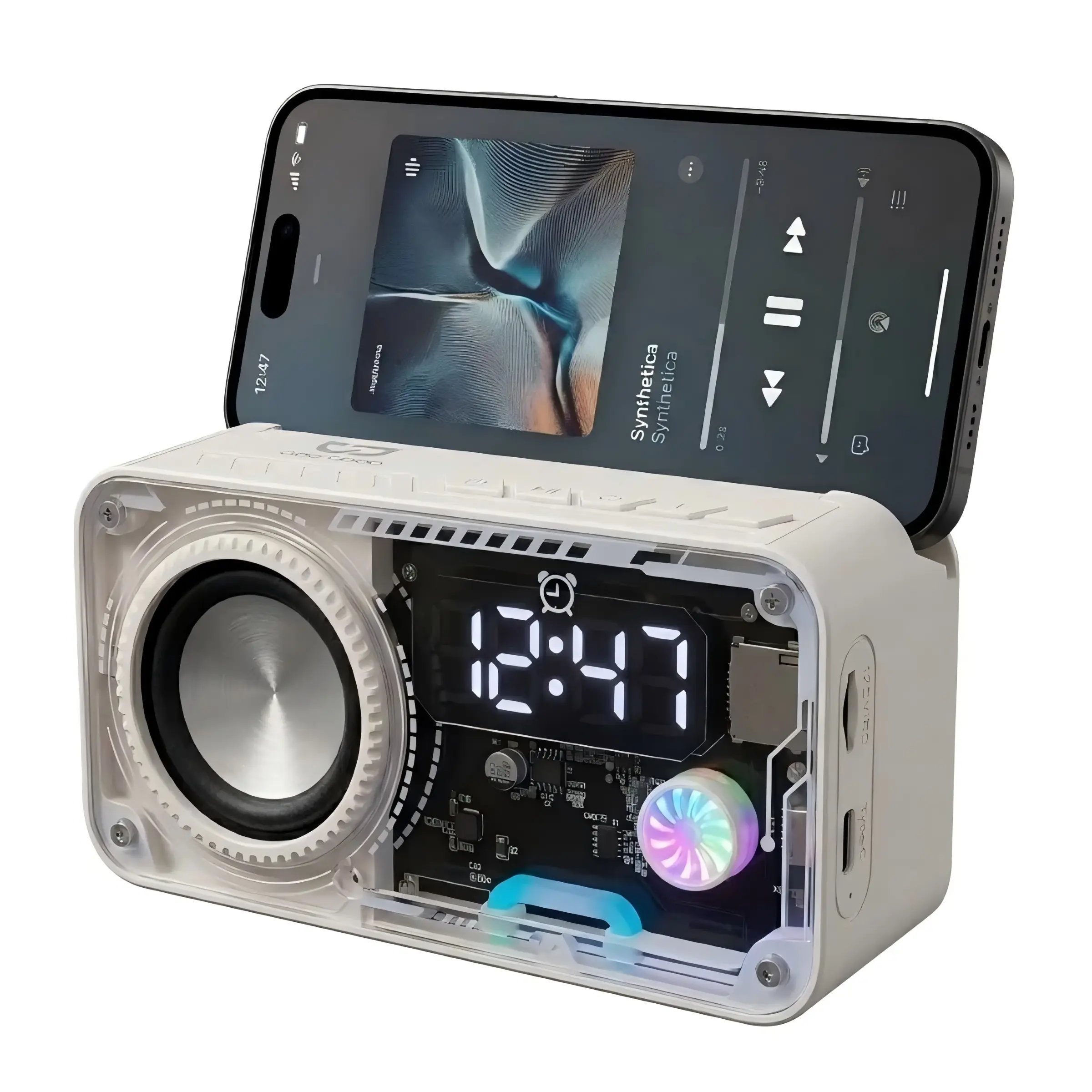 Transparent Mech Wireless Bluetooth-compatible Speaker with Phone Stand, RGB LED Night Light, Portable Stereo Sound System, Long Battery Life