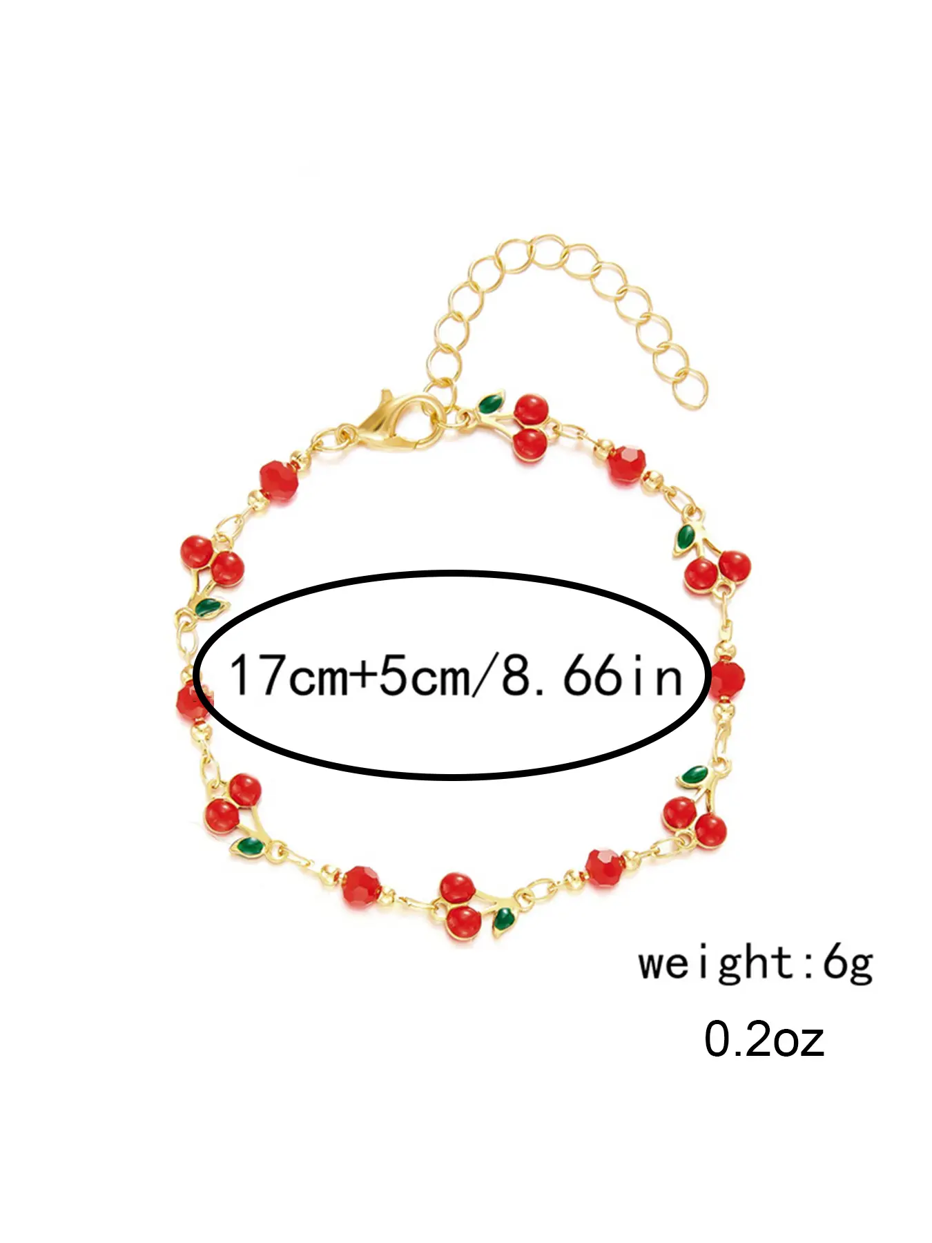 【Charming Cherry Motif】: Featuring an adorable cherry motif, this bracelet adds a playful touch to any accessory collection.