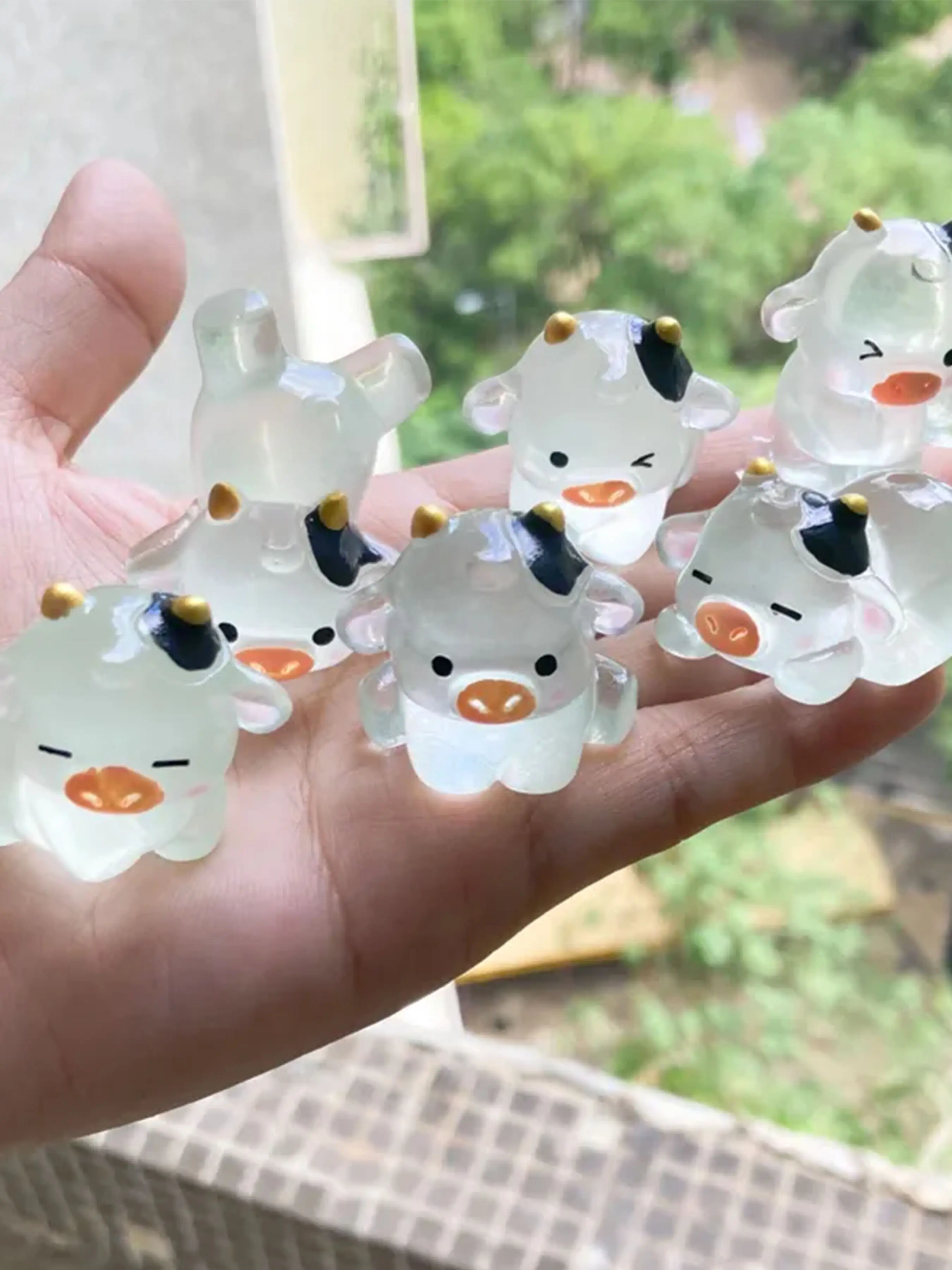 5pcs/10pcs Glow-In-The-Dark Cow Pendant Resin Fluorescent Convex Gemstone, Cute DIY Craft Accessories, Adorable Decorative Ornaments