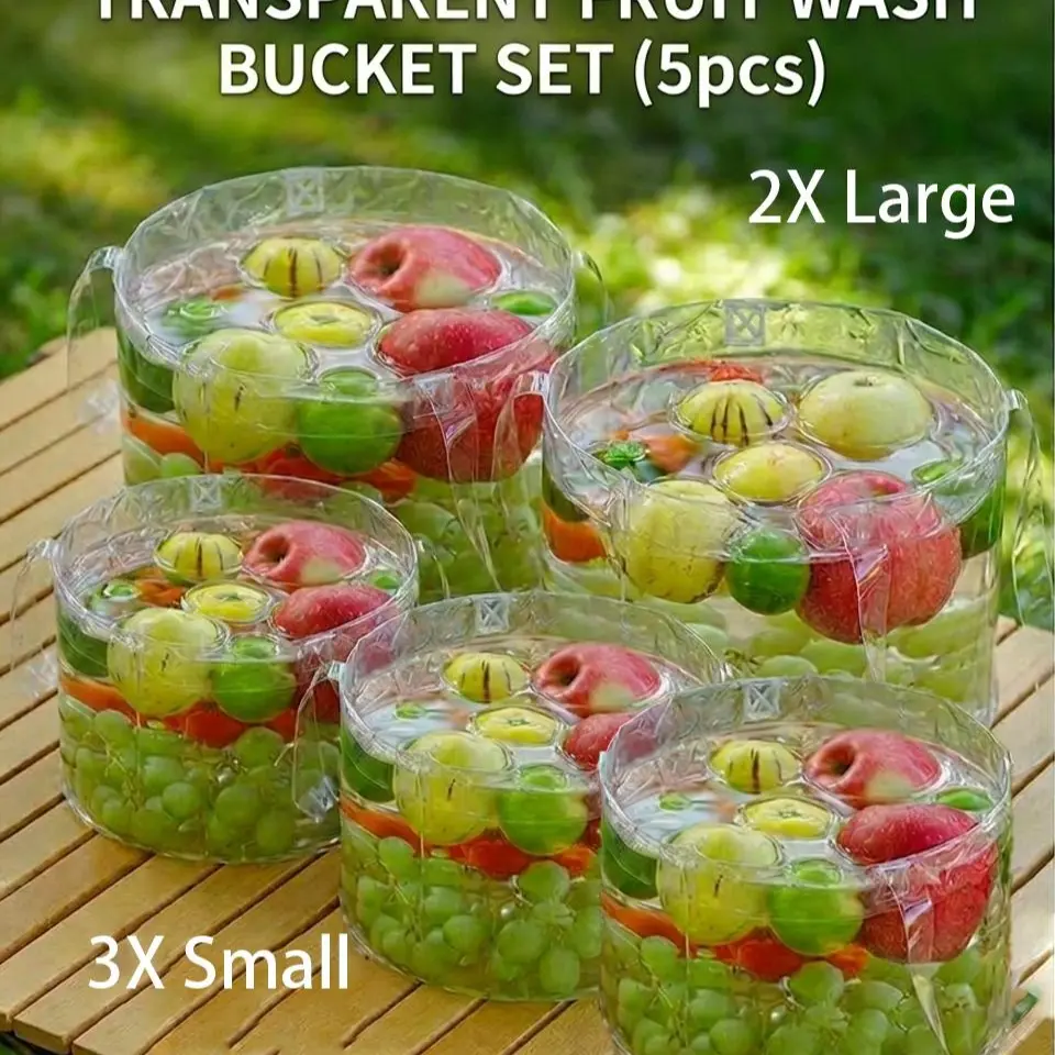 5PCS Clear Ice Bucket Bag Set - Value Pack (3 Small & 2 Large) - Portable Leakproof PVC Wine Chiller Totes for Picnic, Beach & Party Essentials