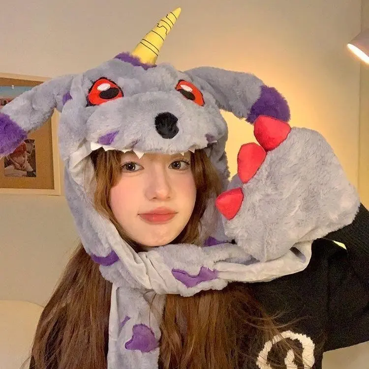 Digimon Adventure Gabumon Hat Anime Peripheral Plush Toy Cos Anime Figure Two-dimensional Cartoon Kawaii Scarf Gloves Gift