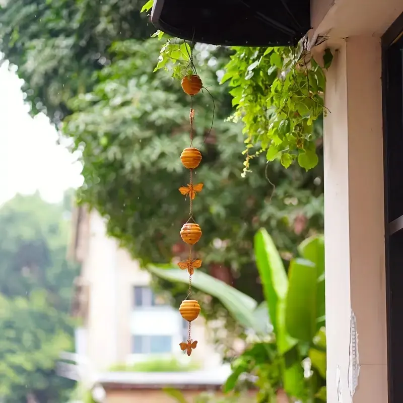 Rain Chains for Downspouts-The outdoor decorative rain chain is made of sturdy metal, consisting of 4 cups and 4 bee, beautiful and practical.