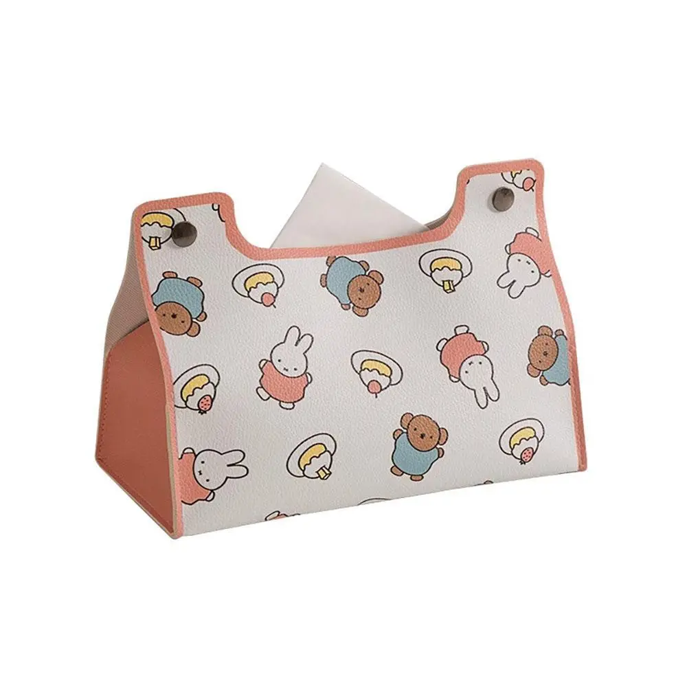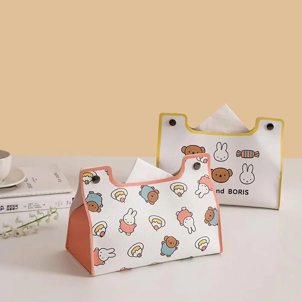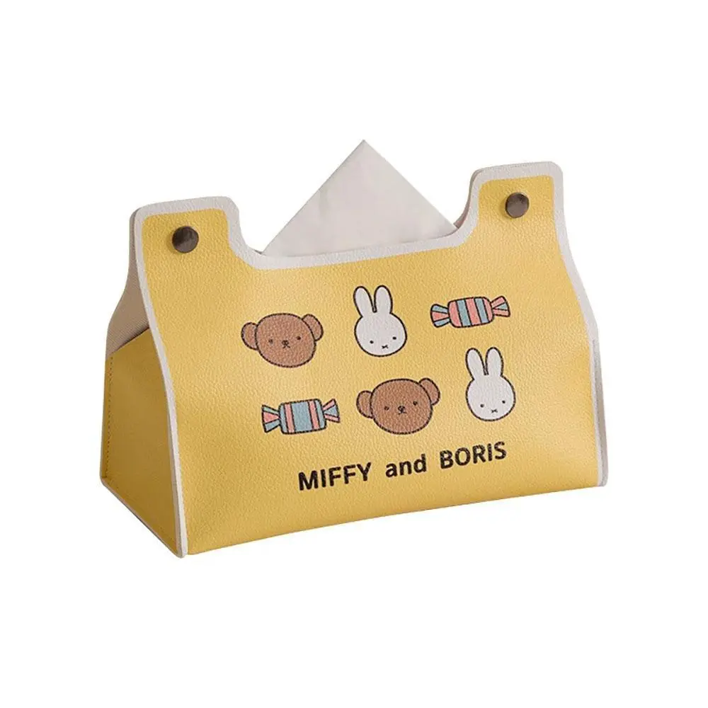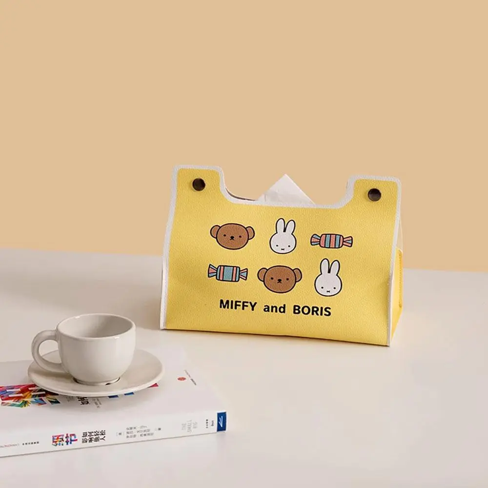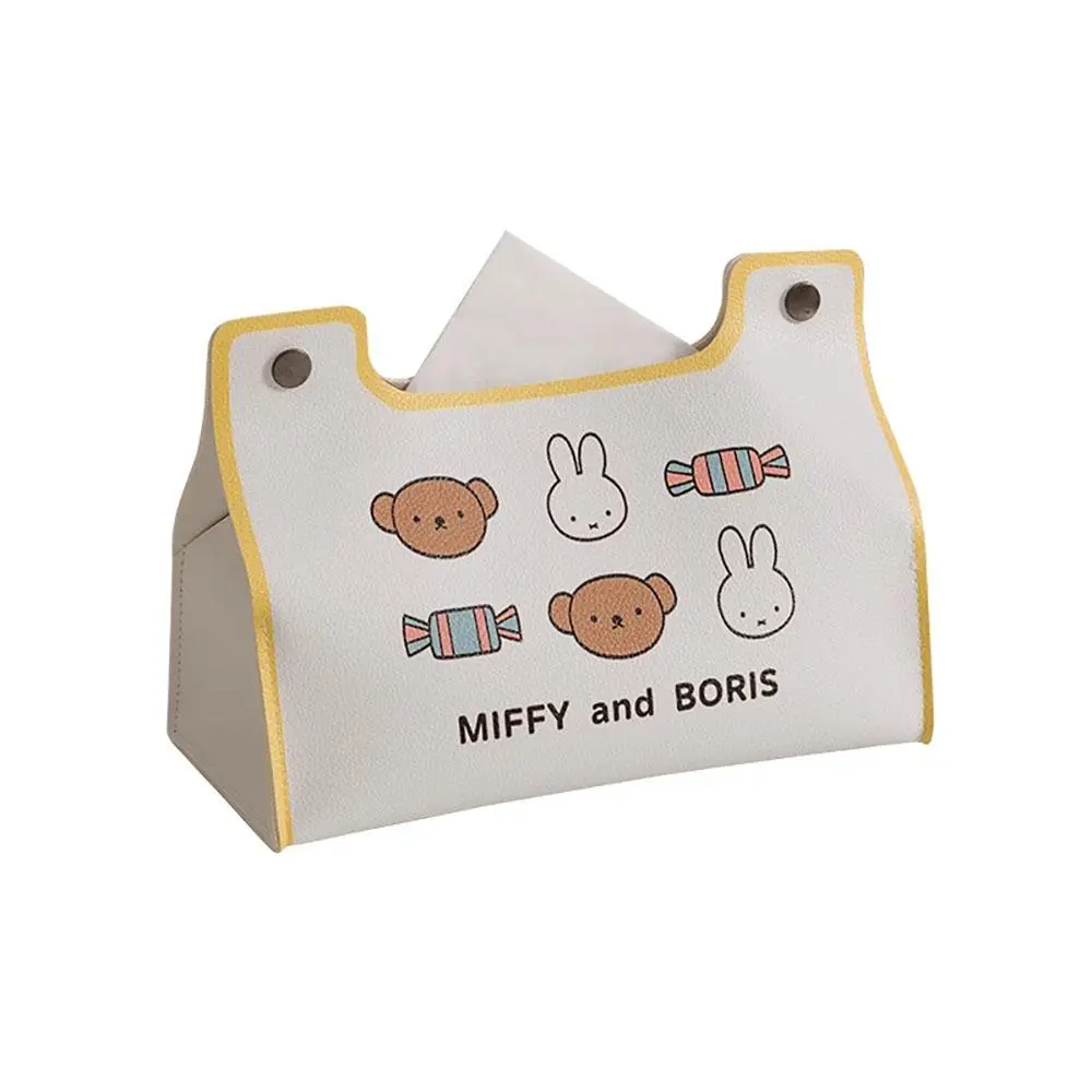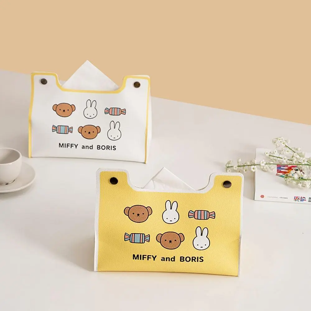 Kawaii Miffy New Cute Tissue Box Cartoon Rabbit Printing Pu Waterproof Simple Style Household Desktop Storage Bag Girl Gift