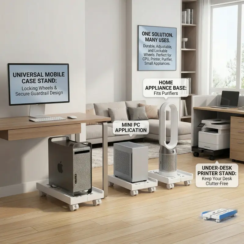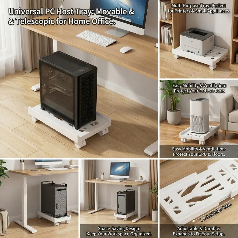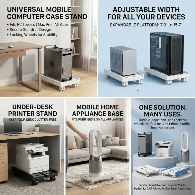 Adjustable Computer Tower Stand with Locking Casters - Universal Rolling Tray for Printer & Air Purifier - Heavy Duty Mobile PC Holder - Protect Your Device from Dust & Moisture - Space-Saving Office Organizer