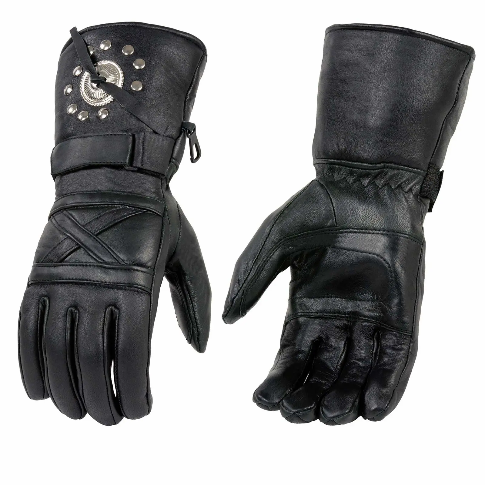 Milwaukee Leather Men's Leather Gauntlet Lined Motorcycle Hand Gloves w/ Conchos