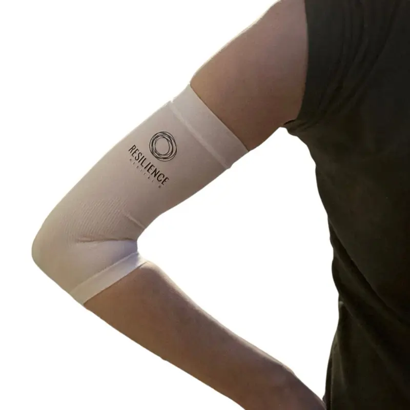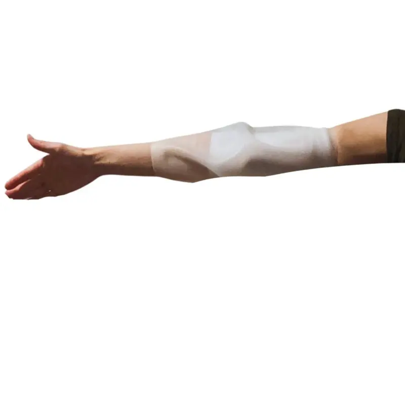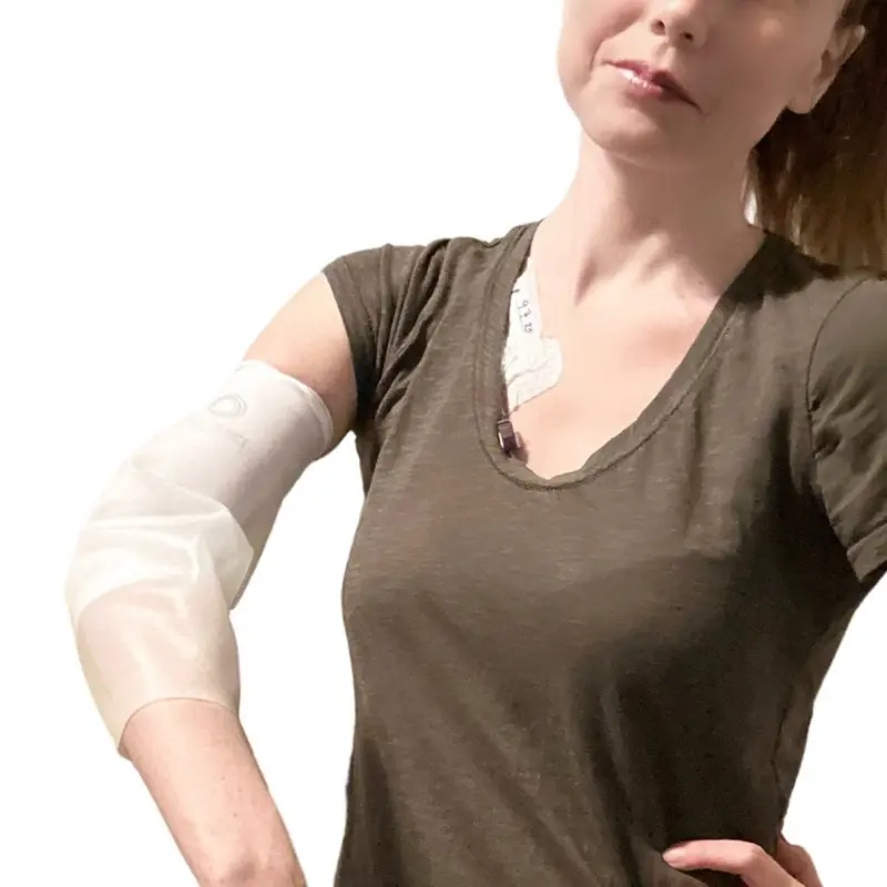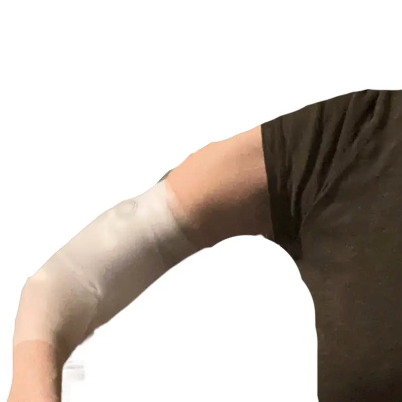 or discomfort. It allows you to free up your hand and move freely. There is no need to use covers and shower guards with tape that not only can not only cause irritation and sensitivity, but also often lets water leak through. This sleeve forms a tight seal, around the arm that that protects line from moisture. The arm comes with two fabric sleeves and the silicone sleeve to place overtop. This product is made for patients who might be receiving chemotherapy, IV nutrition/ IV meds, dialysis, skin wounds, have an arm injury or surgery.