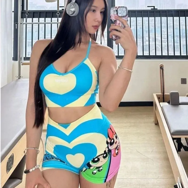5. New The Powerpuff Girls Blossom Bubbles anime peripheral cartoon love print girls summer fitness yoga high-looking set birthday