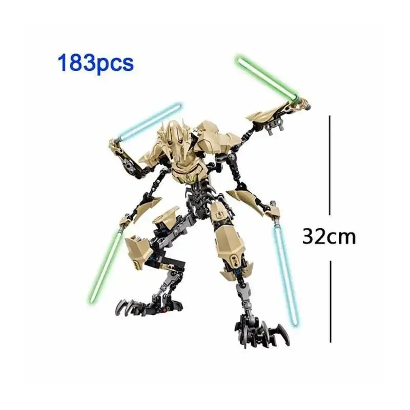 183pcs Ksz714 Star Action Figure Toy Anime General Robot Grievous With Lightsaber Hilt Combat Weapon Model Building Blocks Gifts