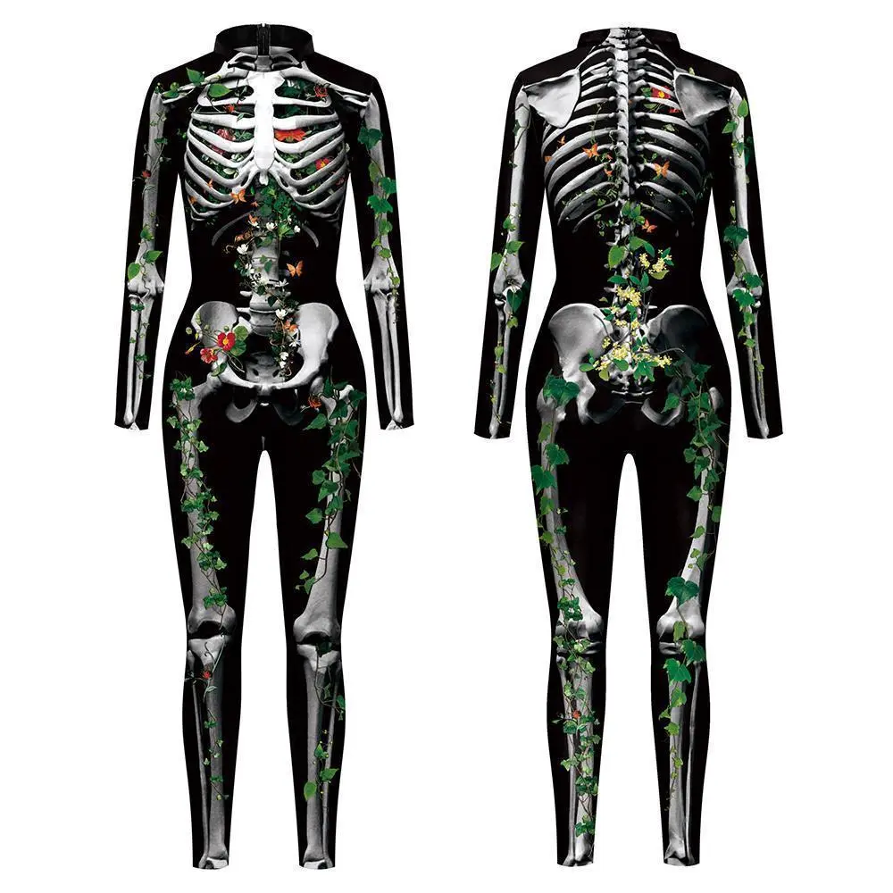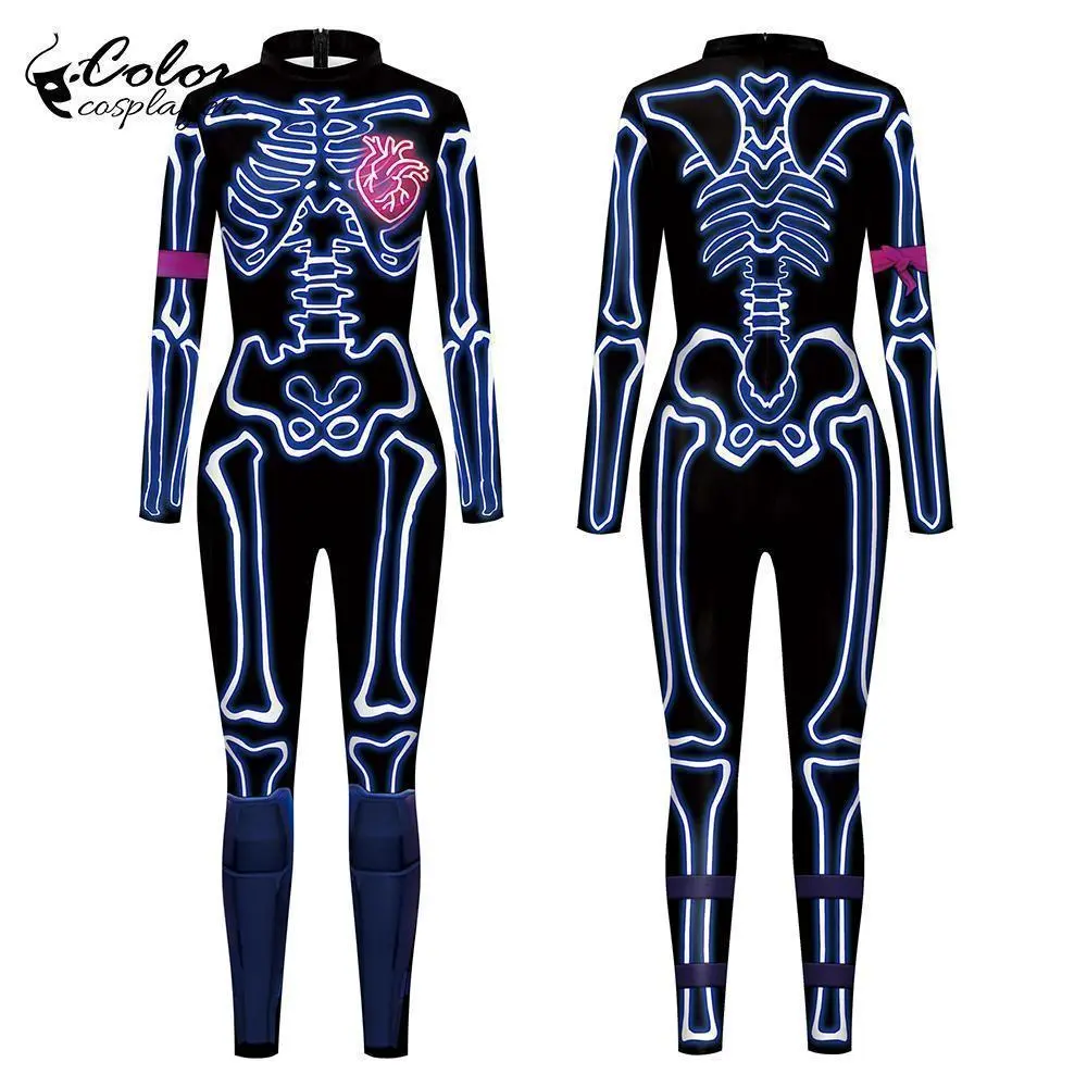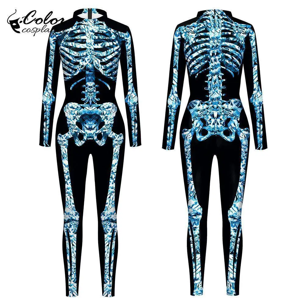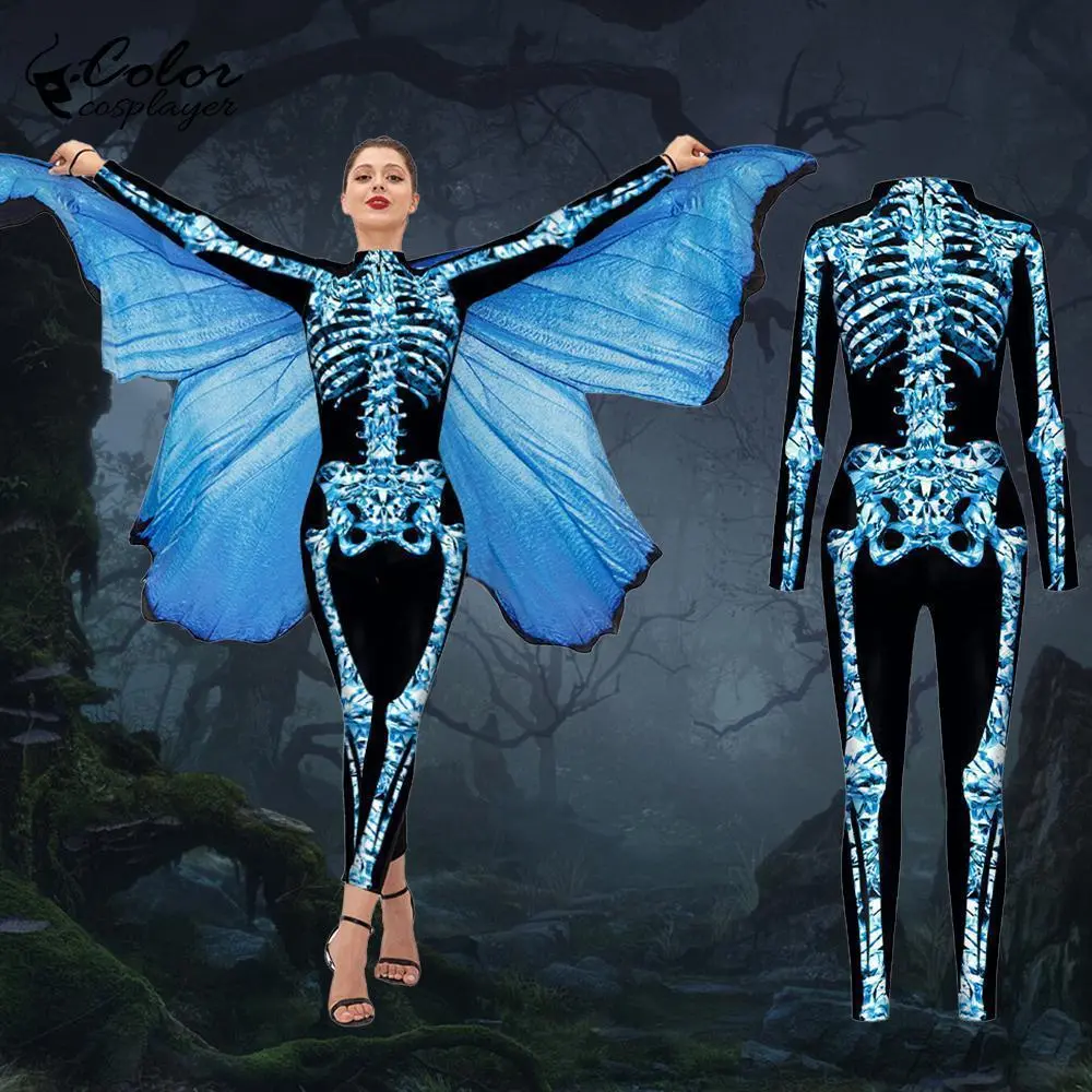Blue Butterfly Cloak Skeleton Jumpsuit Halloween Cosplay Costume Witch Bodysuit Women Catsuit Funny Carnival Performance Outfit