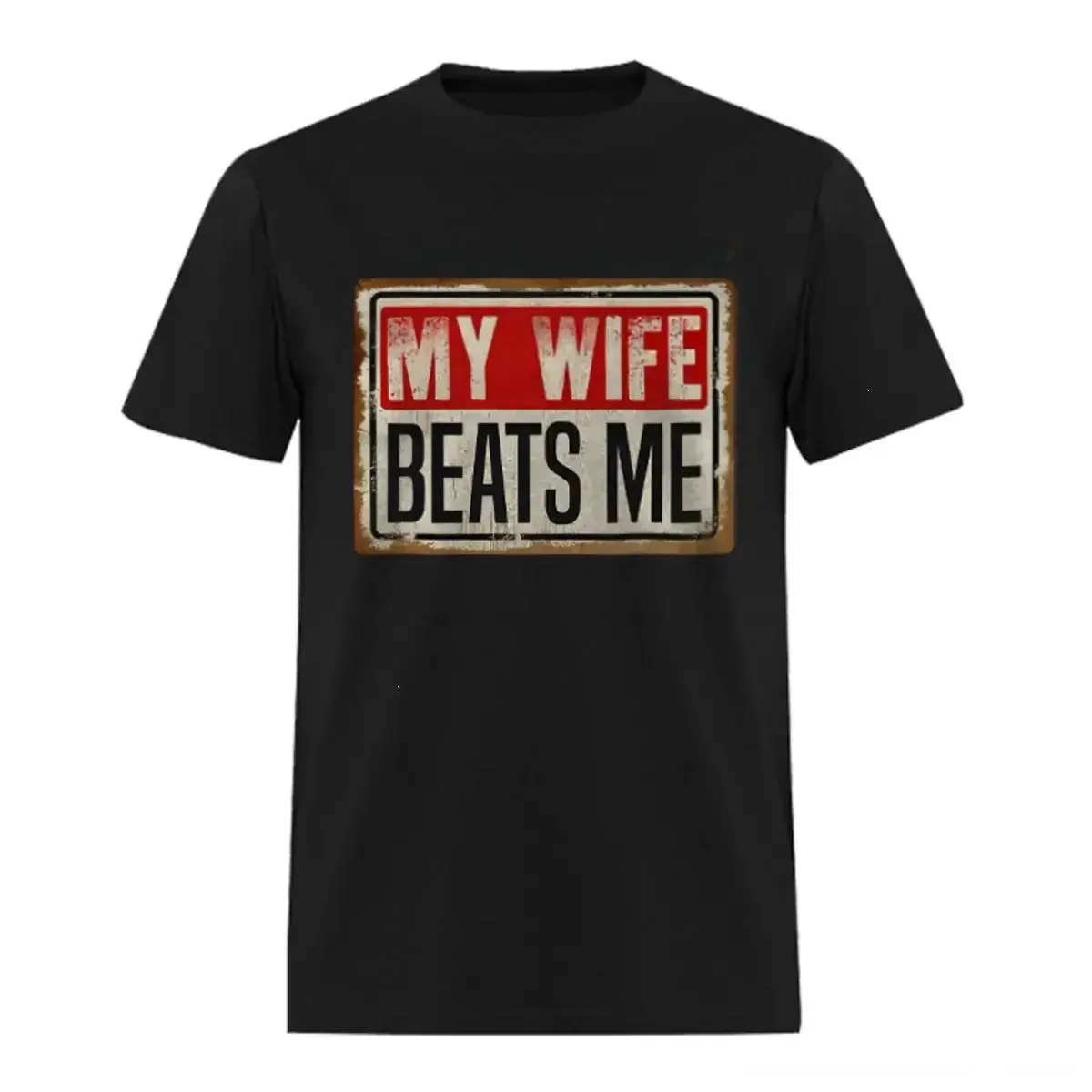 My Wife Beats Me T-Shirt Funny Husband Graphic Tee Sarcastic Husband Shirt Unisex Fathers Day Gift for Husband Dad Gift