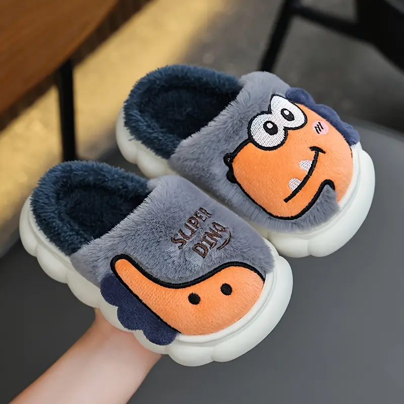 1 Pair Youngsters' Dinosaur Slippers - Cute Cartoon Dinosaur Design, Lightweight & Soft Fabric, Round Toe, PVC Sole, Perfect for Boys & Girls, Winter Home Use, Playful Youngsters'S Footwear, Durable Youngsters'S Shoes