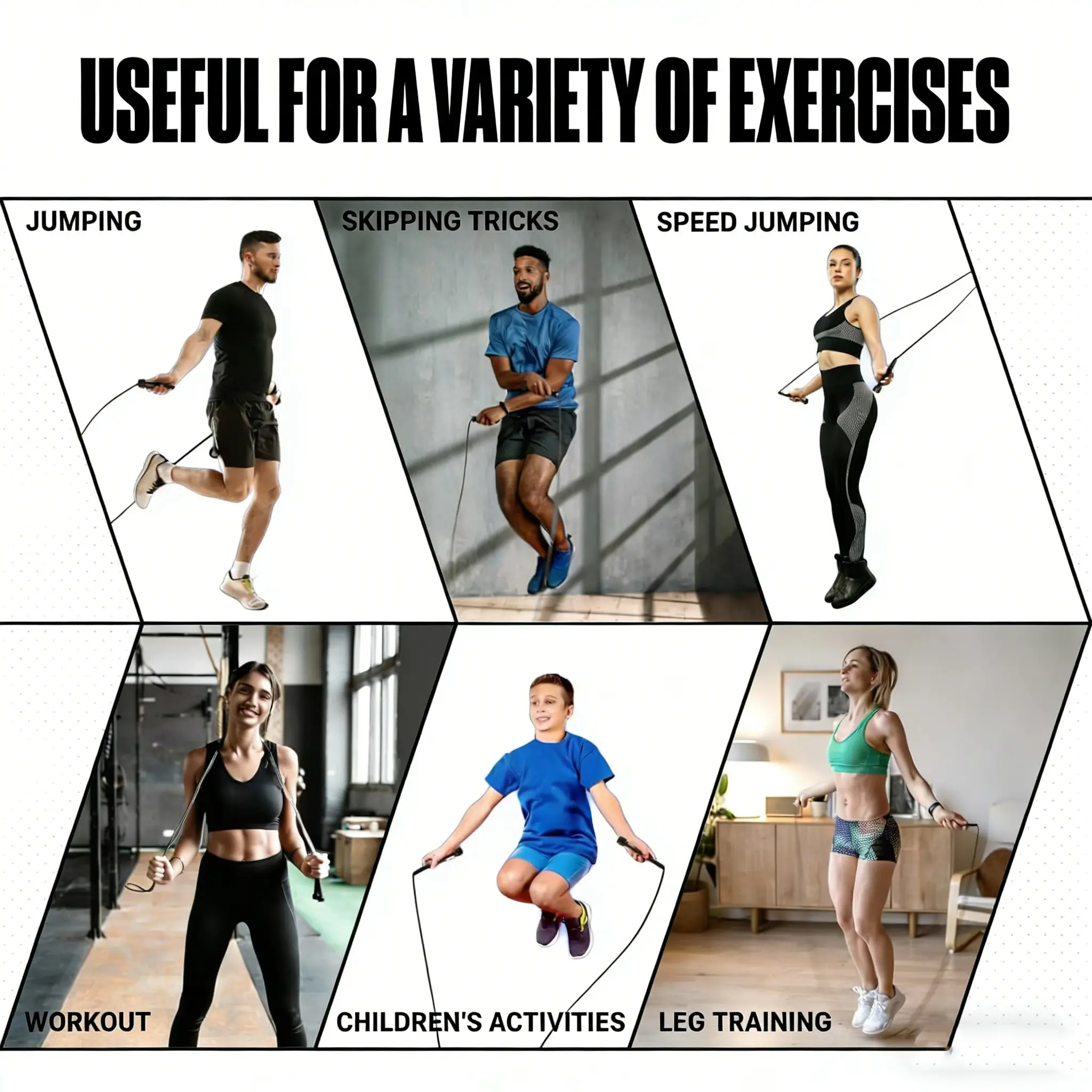 【Versatile for All Activities】 Great for speed jumping, skipping tricks, boxing training, leg workouts, and daily fitness. Its lightweight, portable design makes it easy to carry to the gym, outdoors, or on the go.